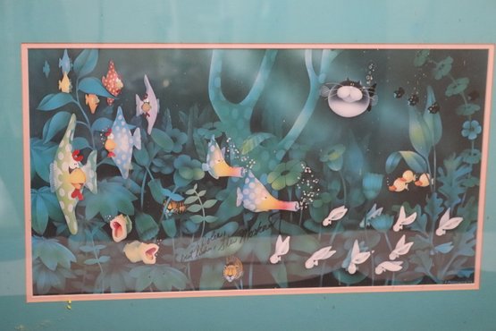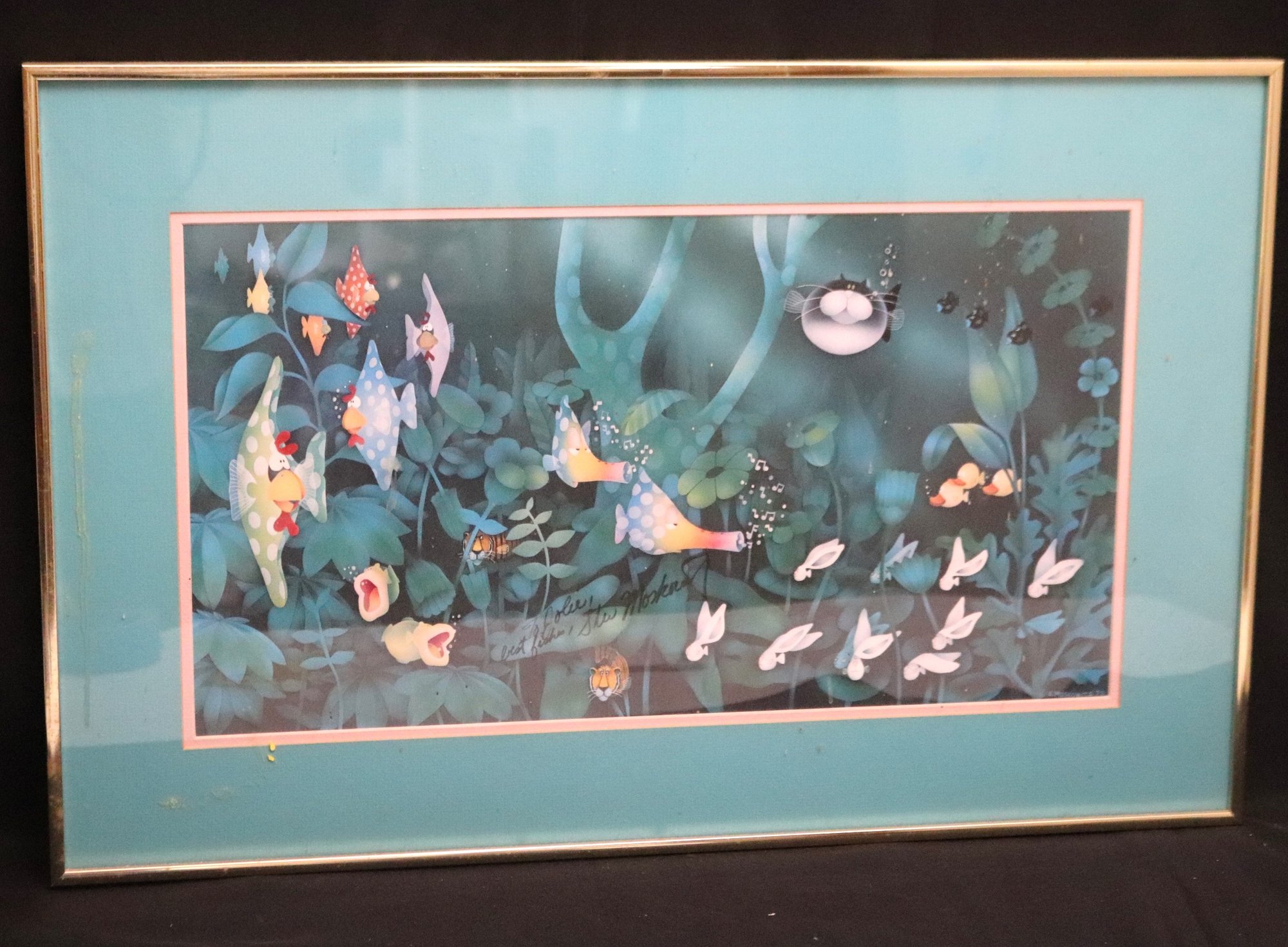 Stewart Moskowitz 1974 print with singing fish and autographed dedication.