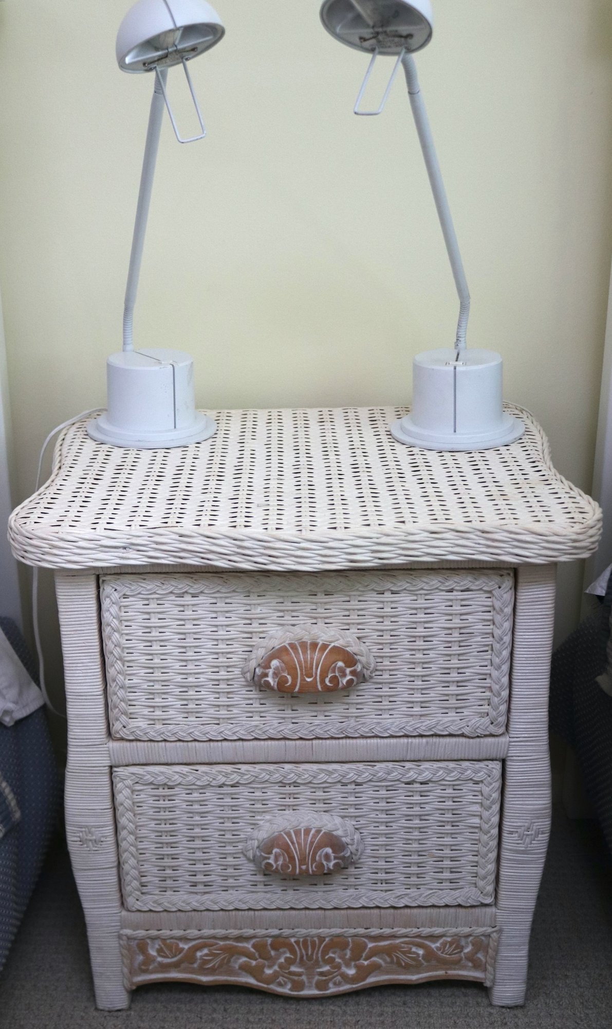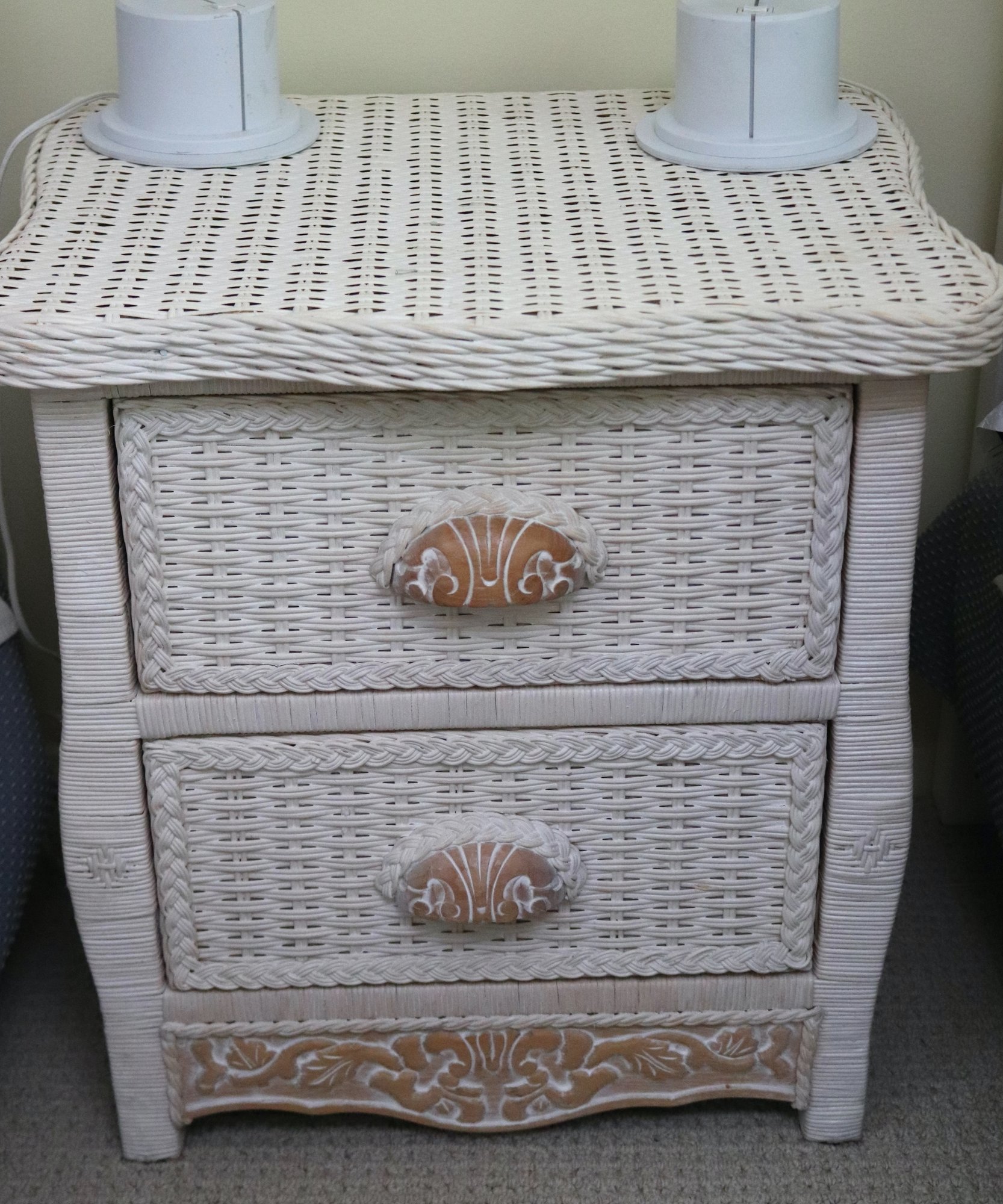 Nightstand is 22” x 18”x 22” T. Lamps are 5.5” x 22” T