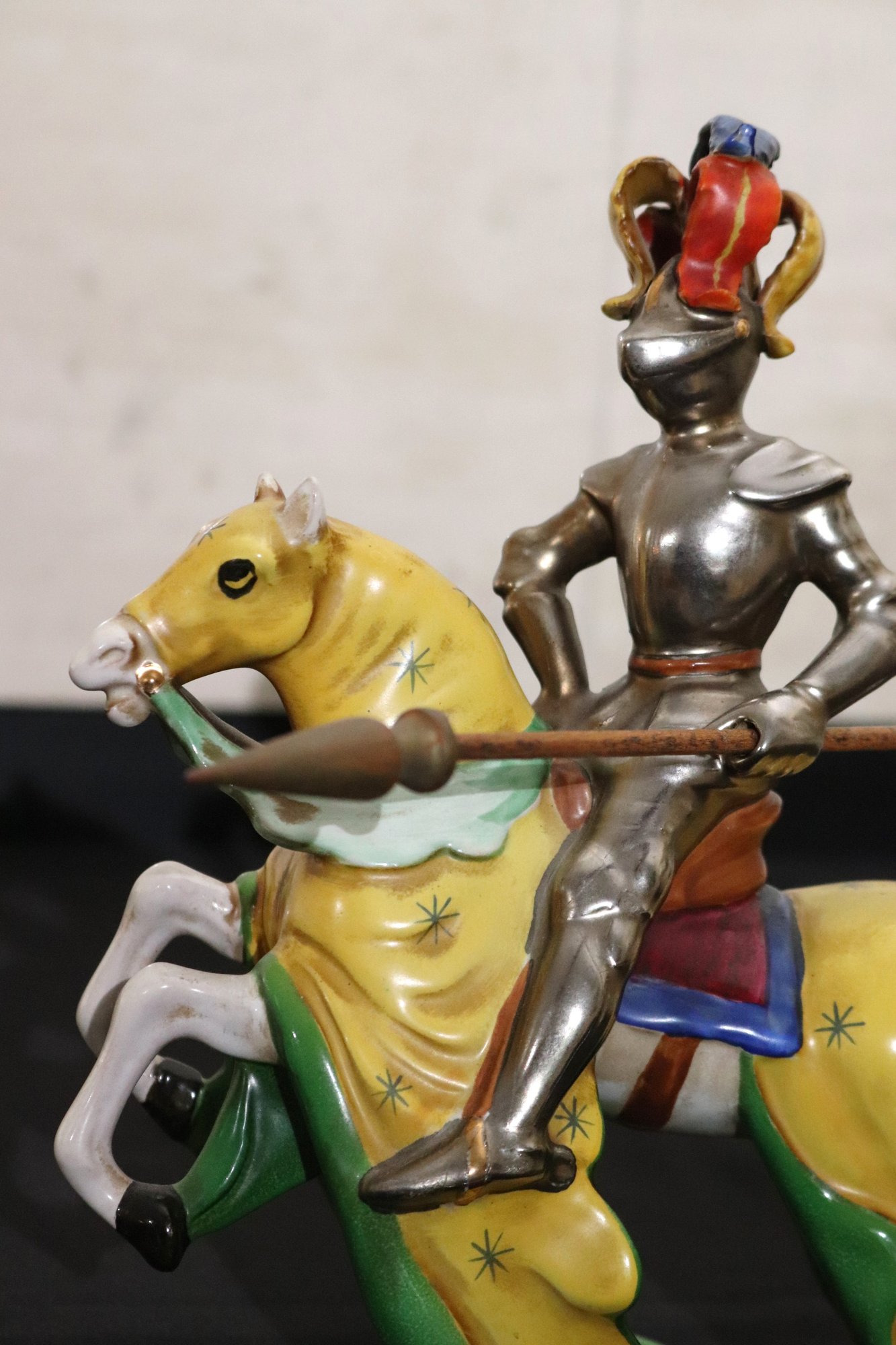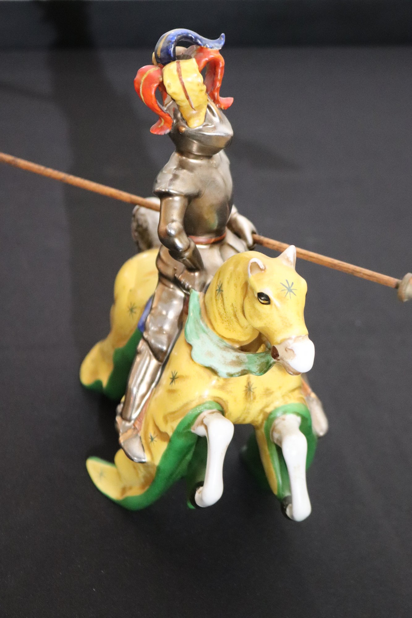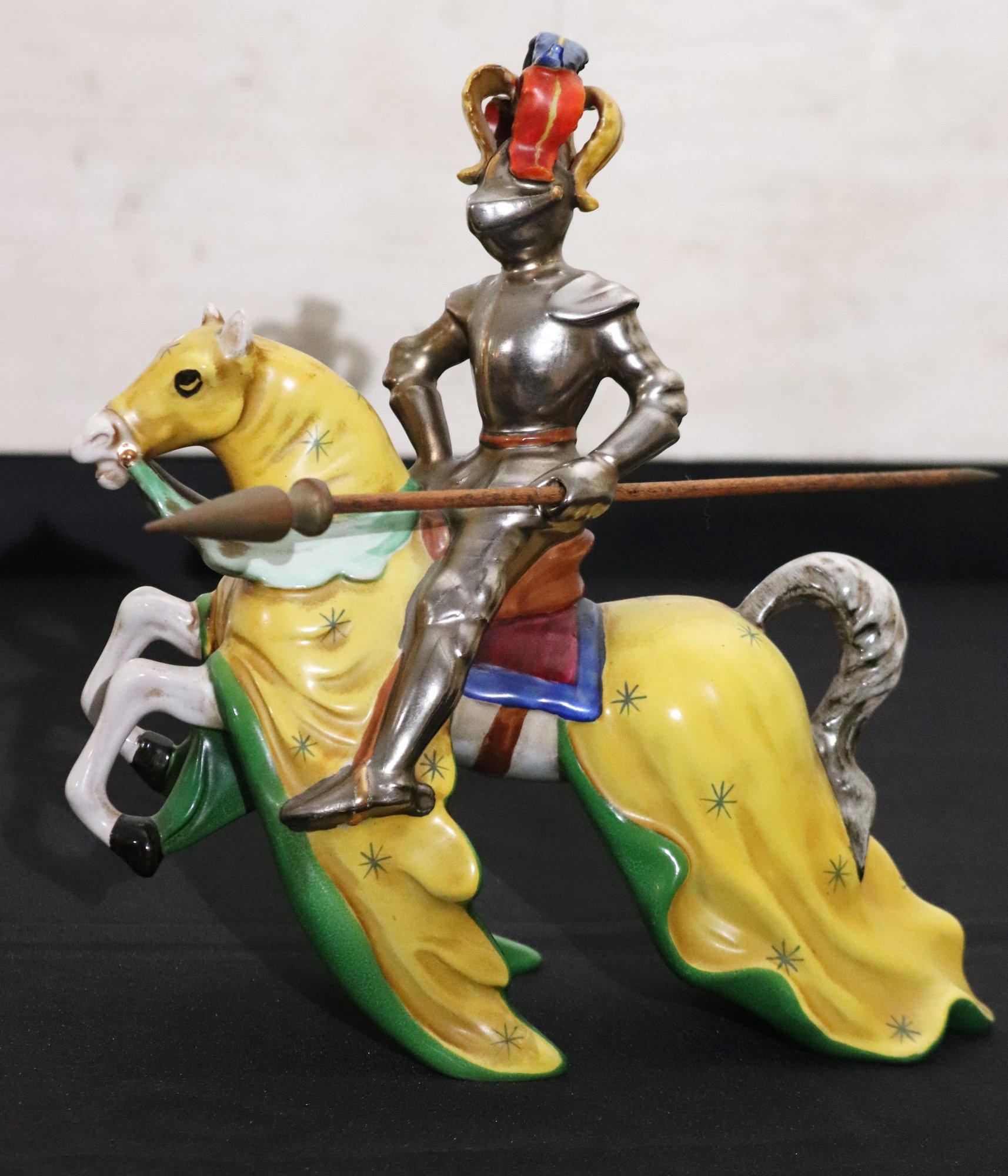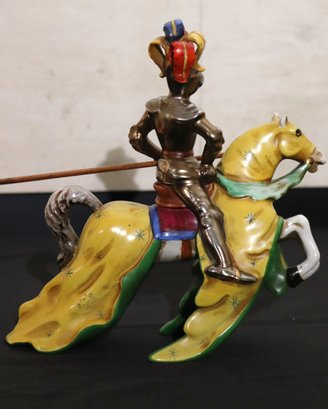 Italian made Ugo Zaccagnini porcelain knight mounted on horseback with spear, this