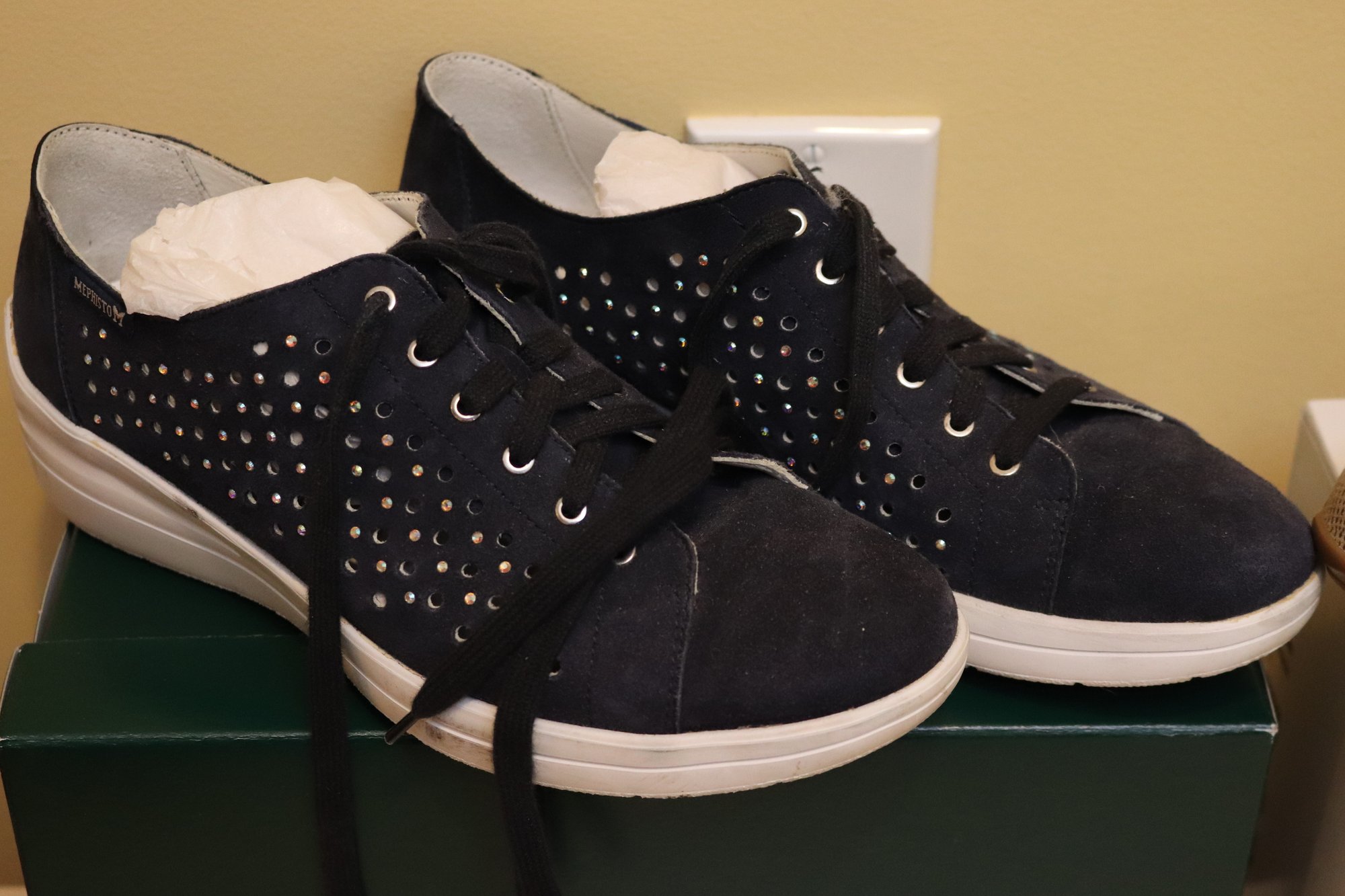 Three pairs of Designer ladies’ shoes in like new condition from Mephisto, Jildor & Born. These shoes have nicely textured & sparkly finishes & are in New & like new condition. SIzes 7.5 & 8