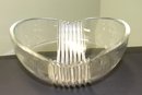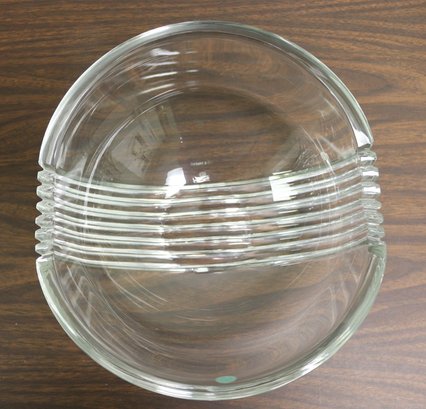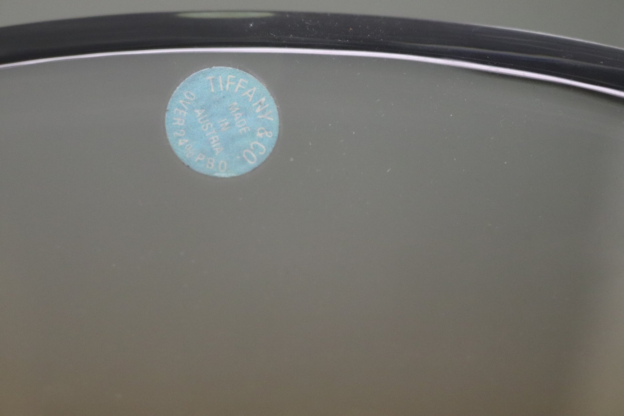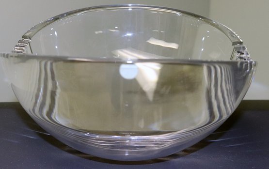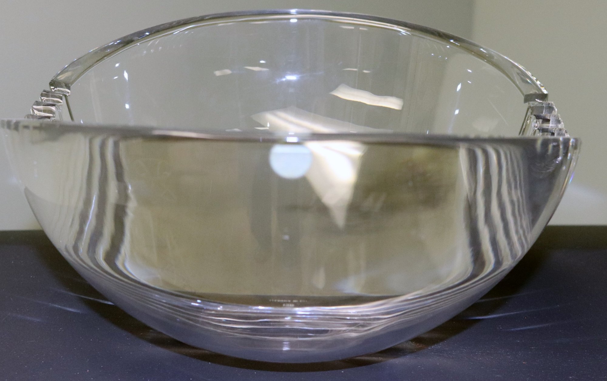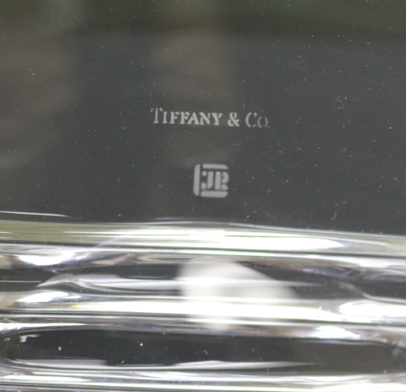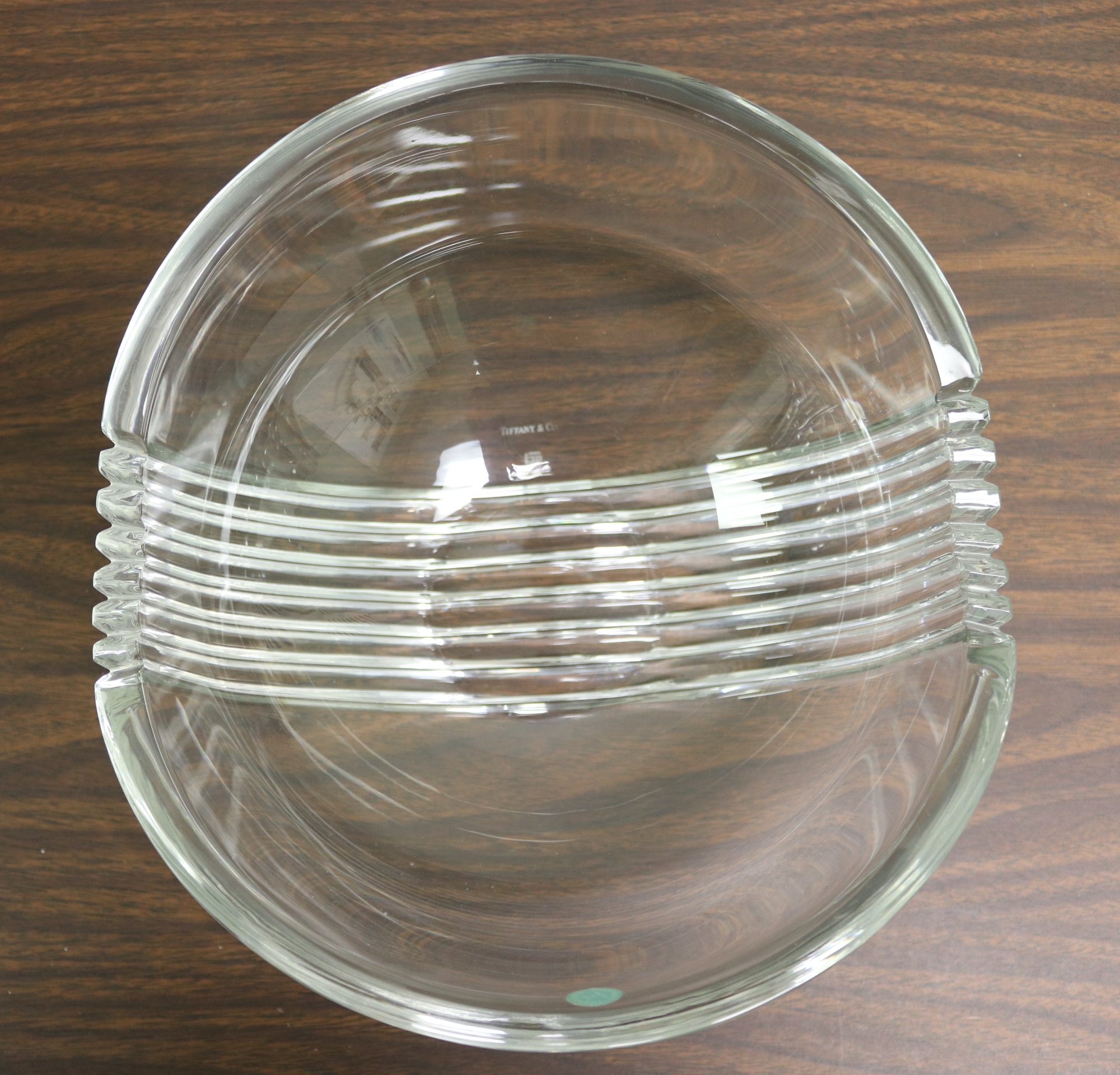 Tiffany & Co. Crystal Metropolis round bowl stamped & with blue tag. Has a clean modern style with cut vertical lines in the center. 9.5” x 5”