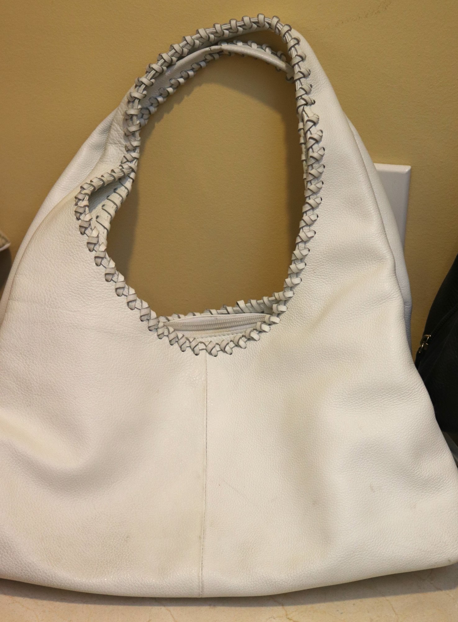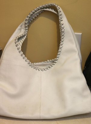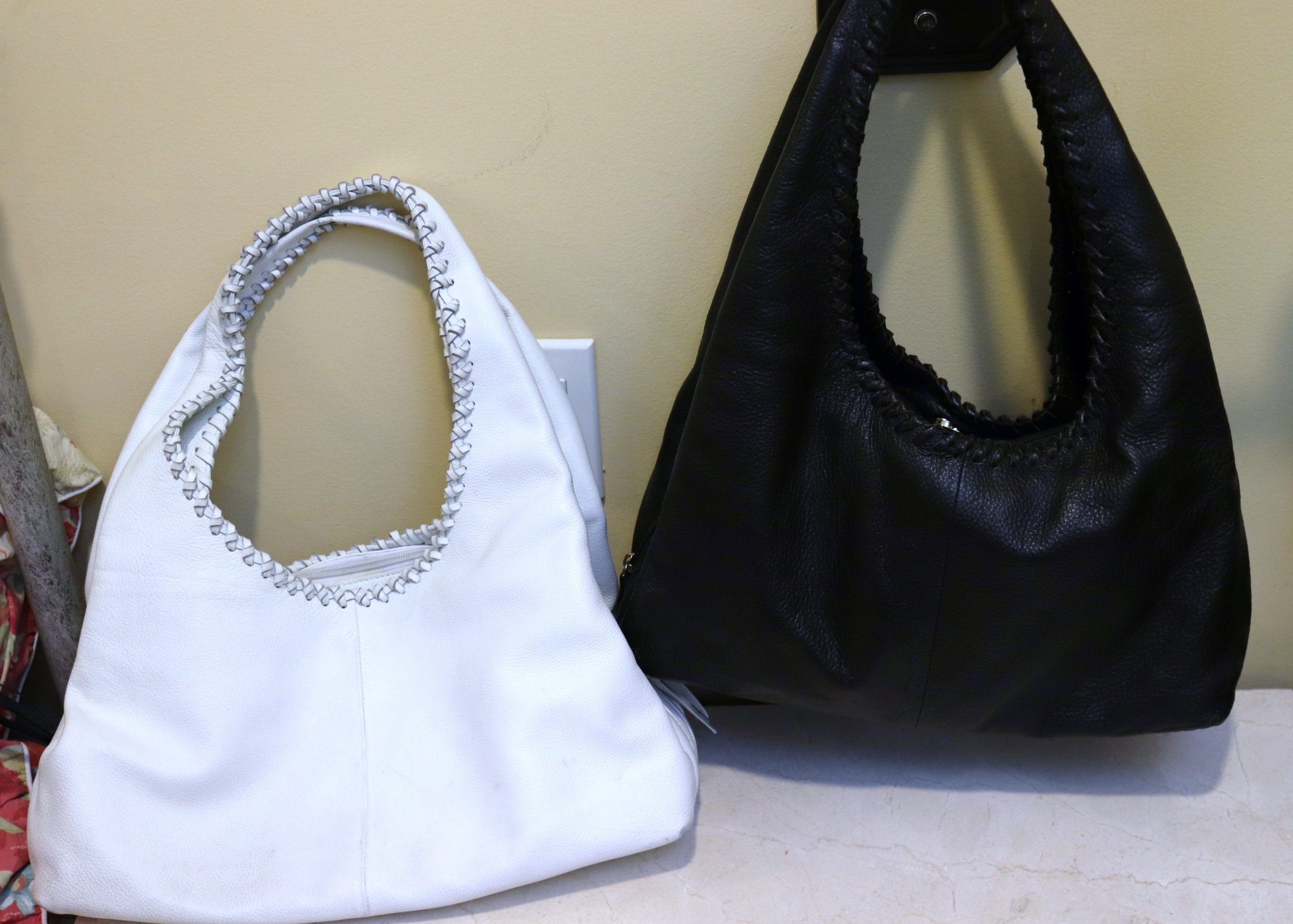 Two Ashrei leather pocketbooks with multiple compartments. Measure approx. 14” x 7” plus handle. bags will benefit from some cleaning.