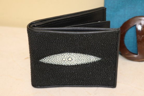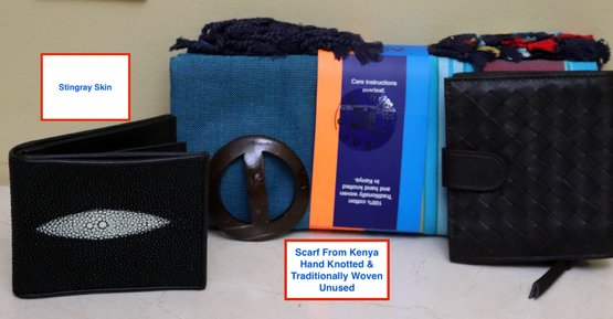 Two new wallets in stingray & leather & hand knotted scarf from Kenya. All in unused condition