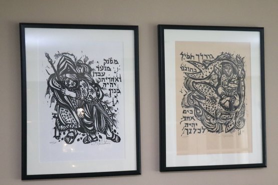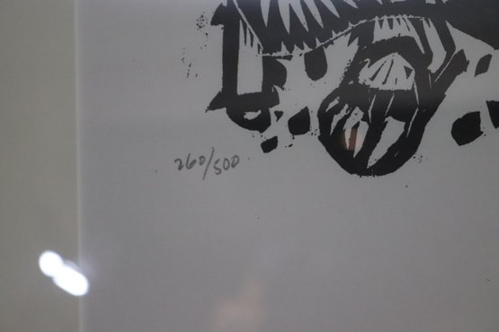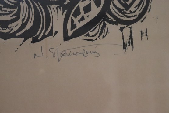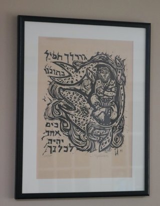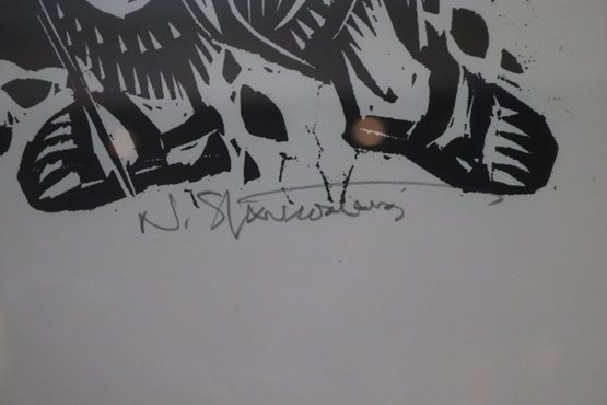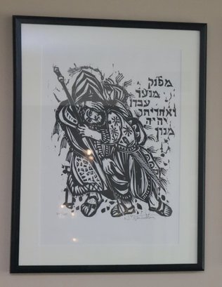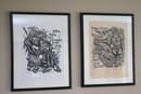 Two Nikos Stavroulakis Proverbs signed & numbered limited-edition woodcut prints. Frames measure 18.5” x 23.5.”