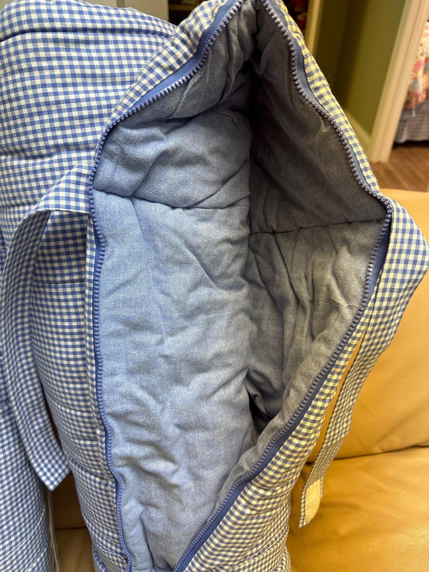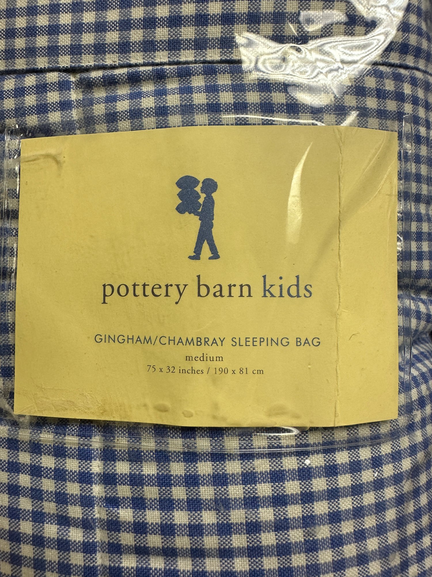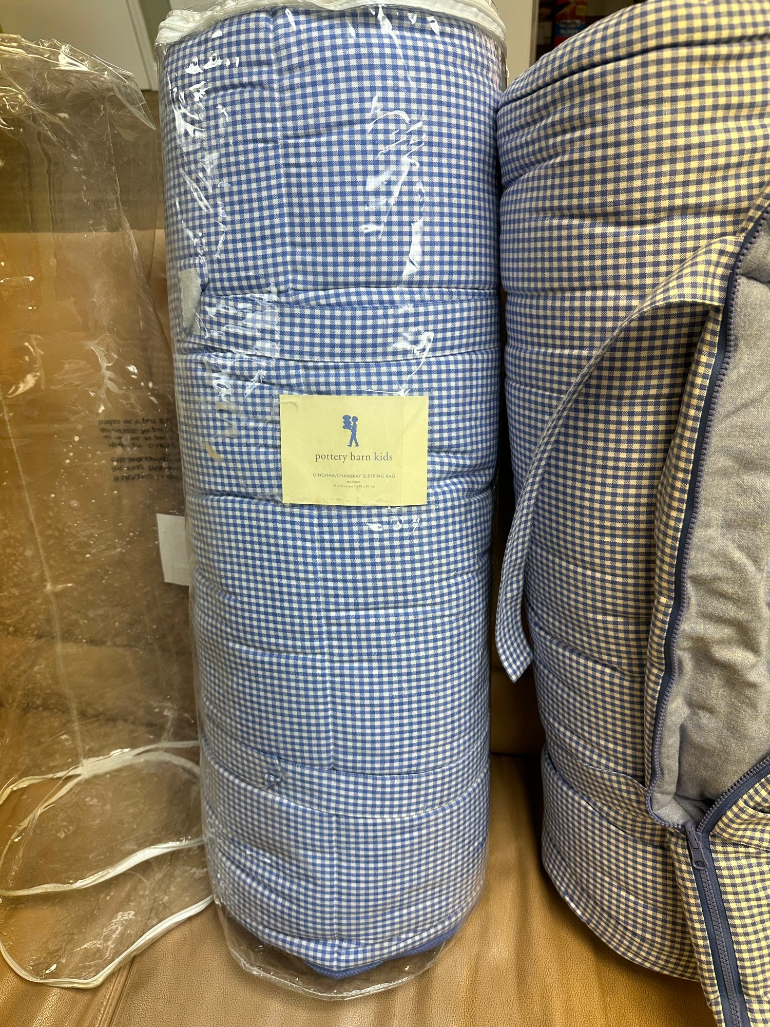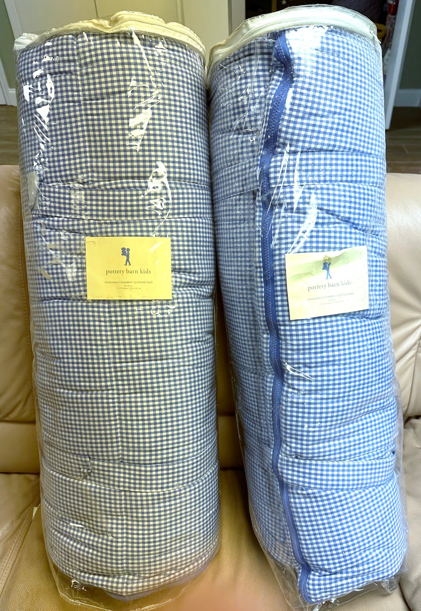 Two Pottery Barn Kids gingham chambray sleeping bags, size medium.