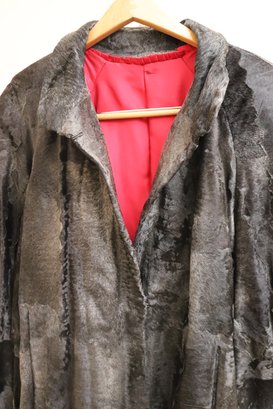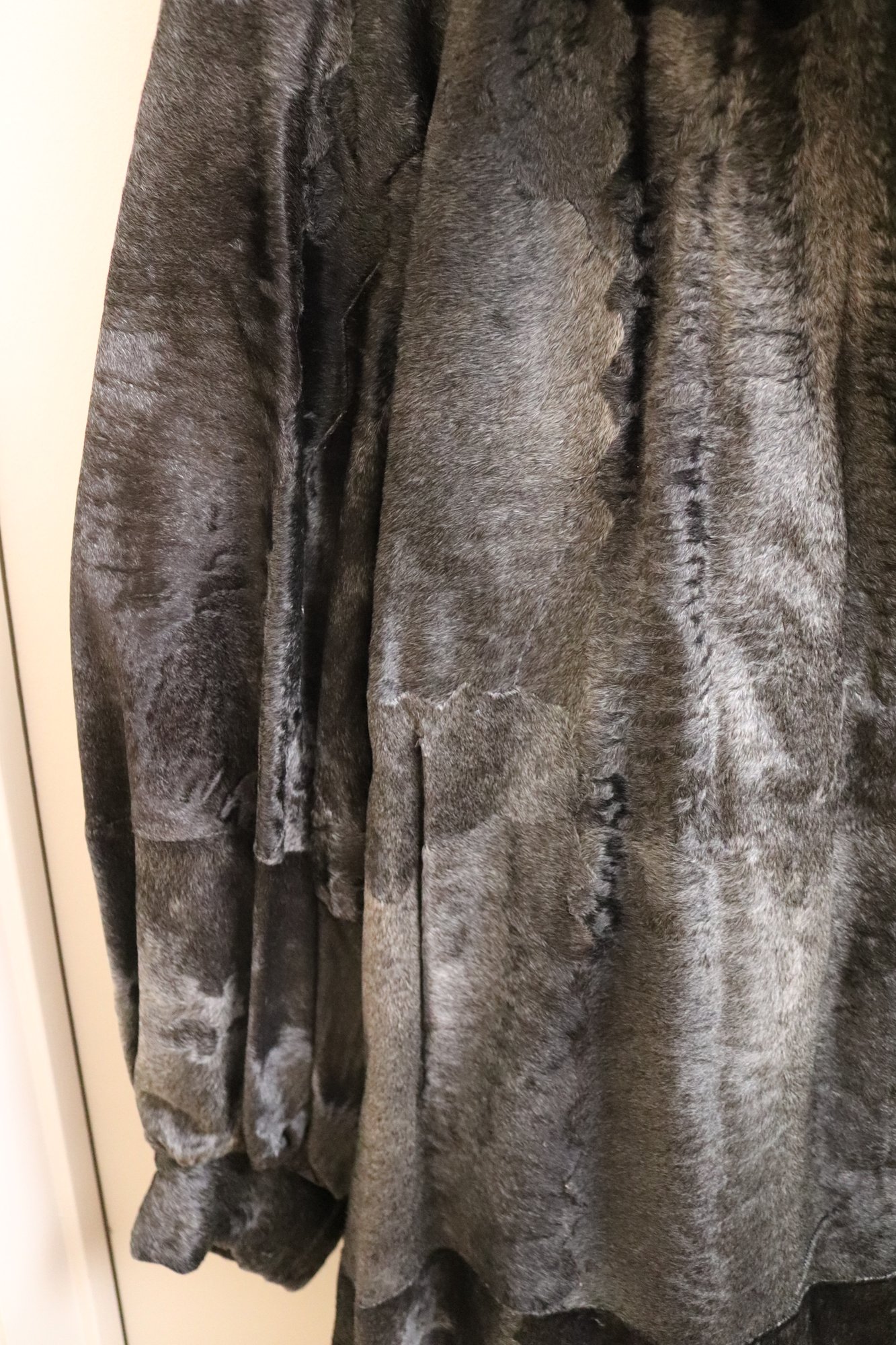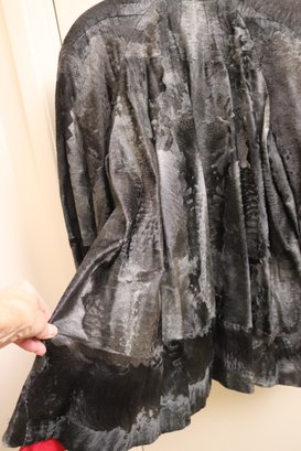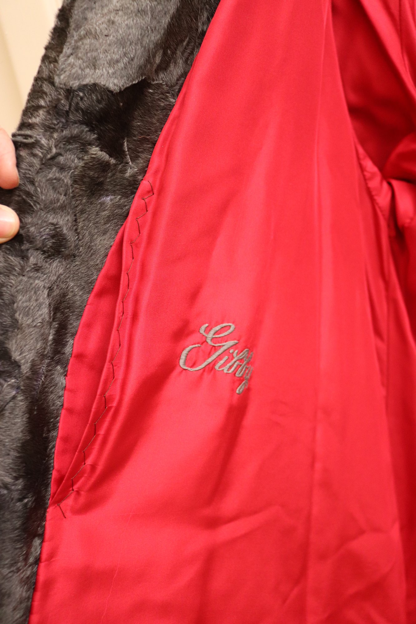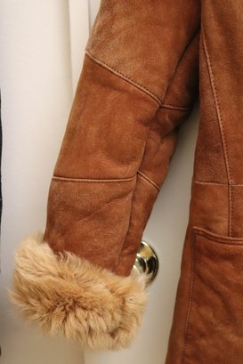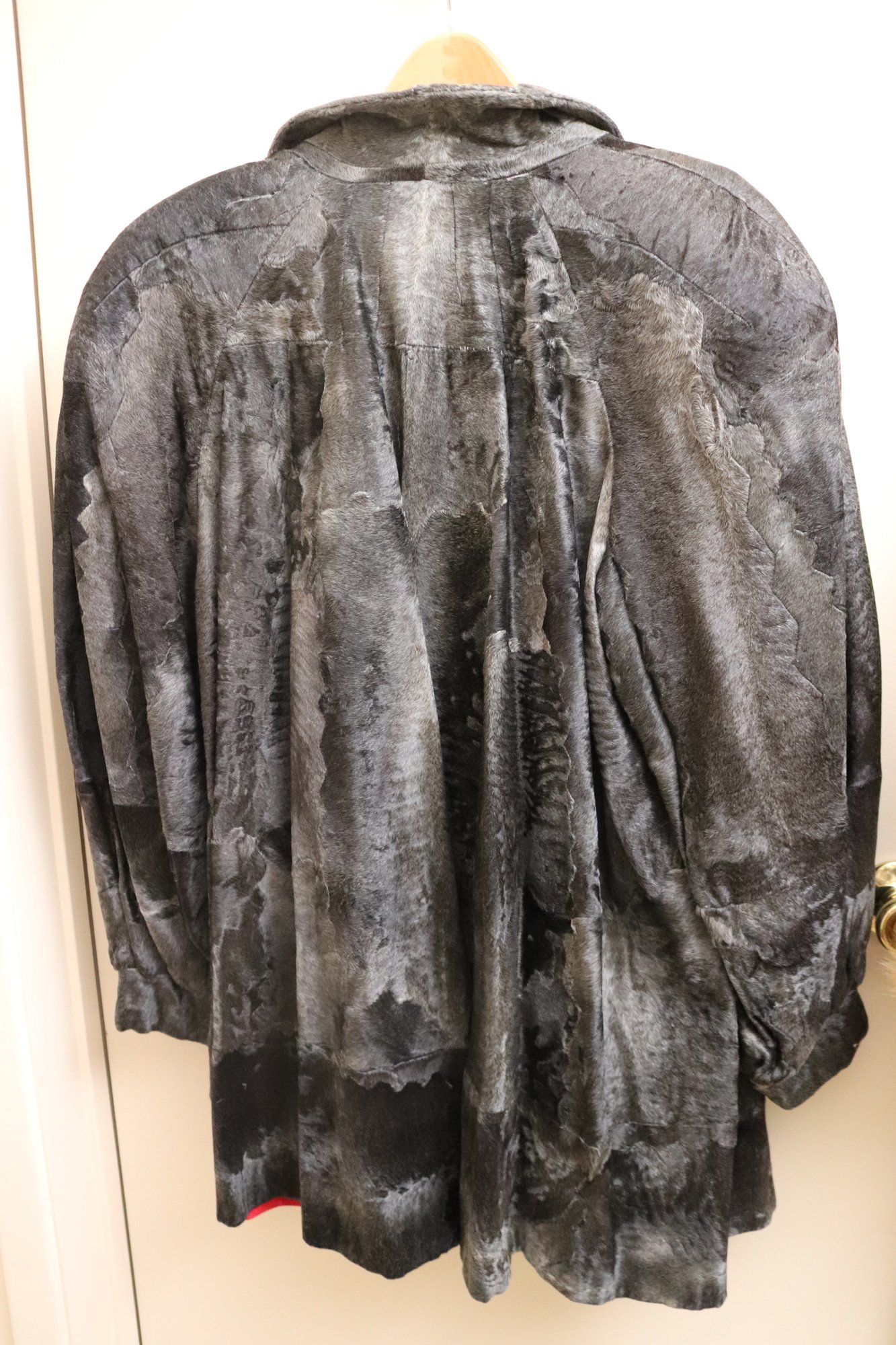 Two vintage ladies’ jackets, light brown shearling, and grey short hair leather