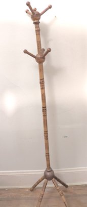 Vintage bamboo coat rack as pictured measures approximately 13” x 13” x 62” tall.