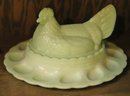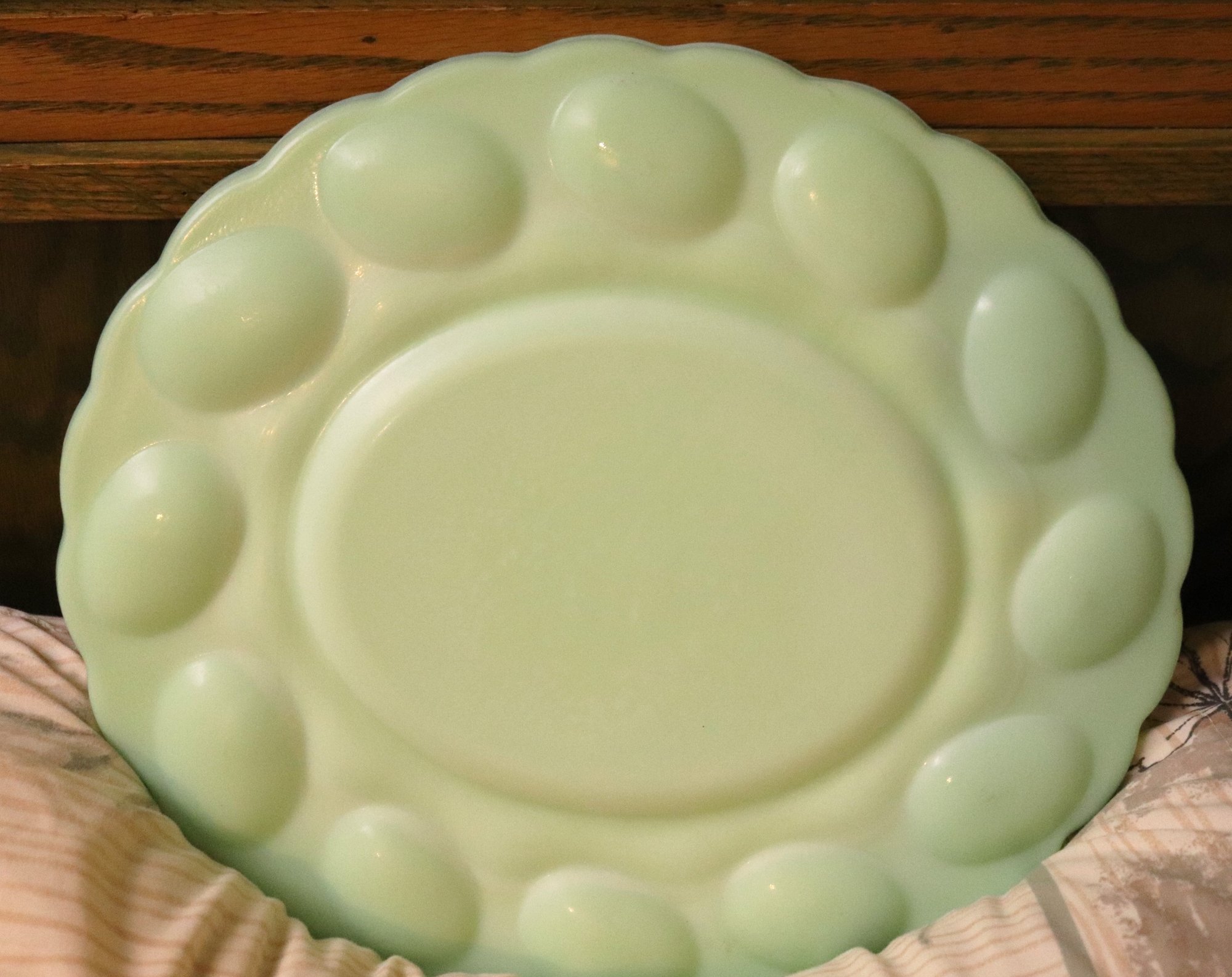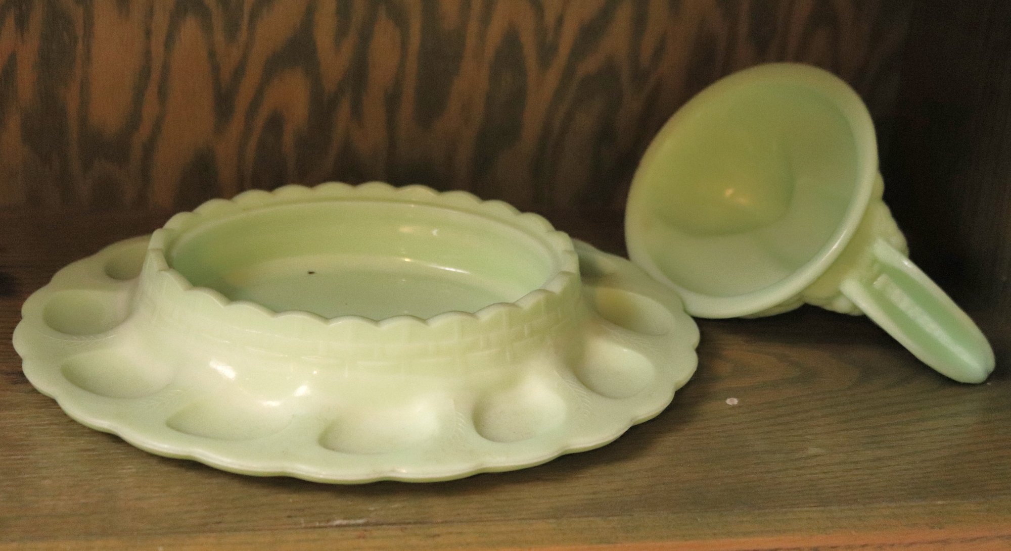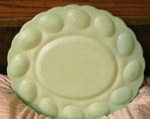 Vintage deviled egg serving dish in a Celadon green tone measuring approximately 13”