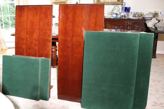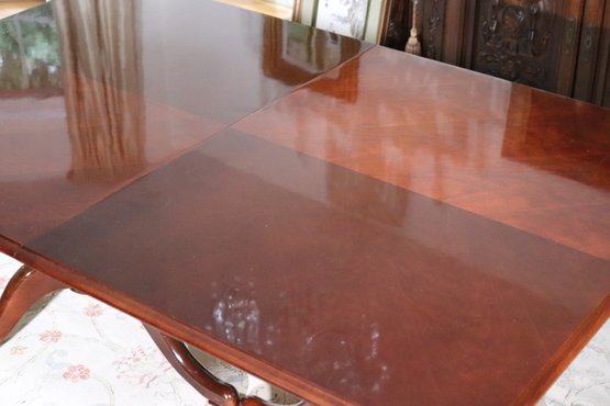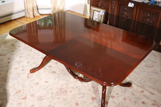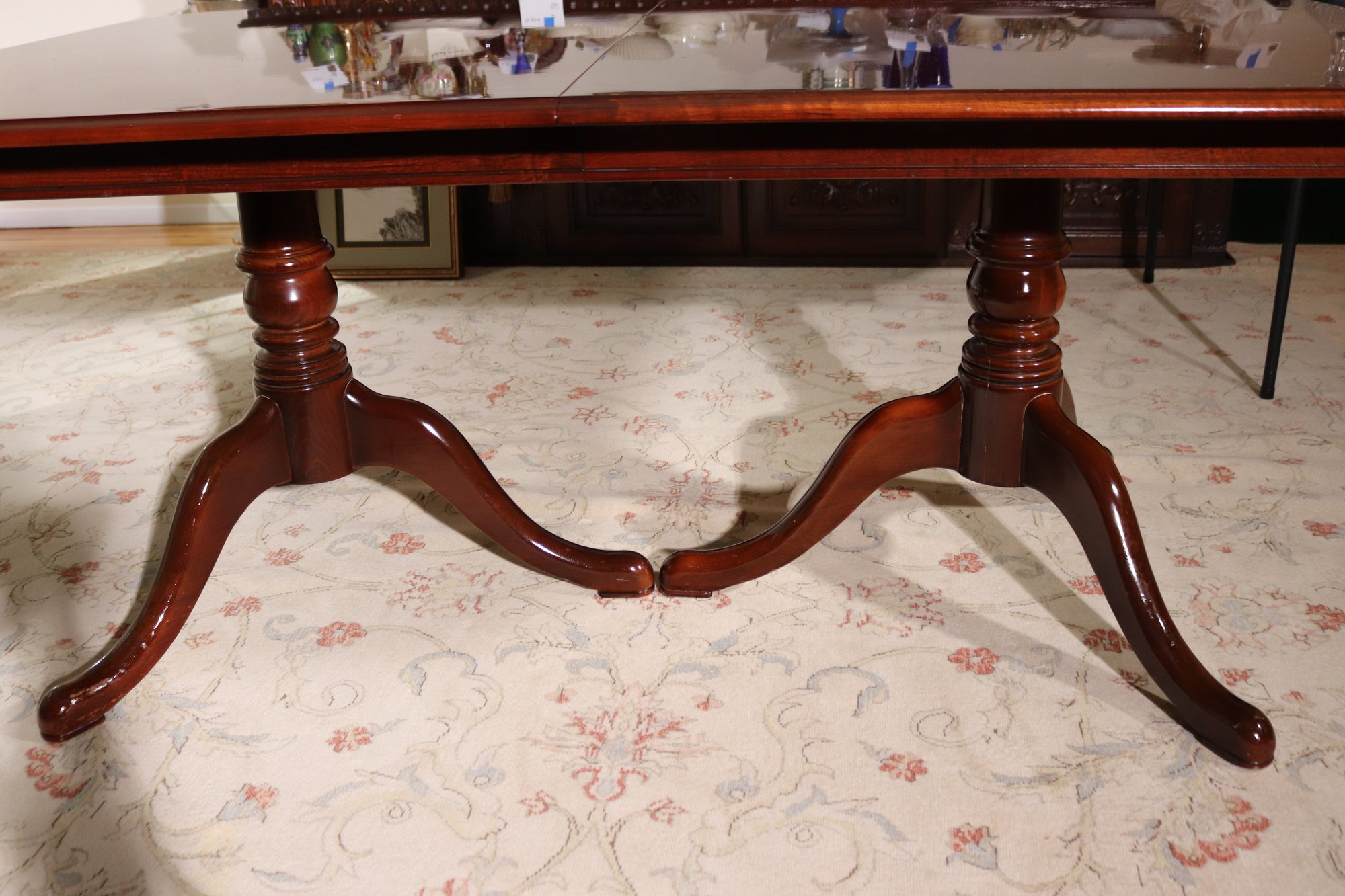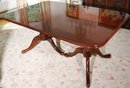 Vintage Double pedestal dining table with 2 extra leaves measuring approximately 20”