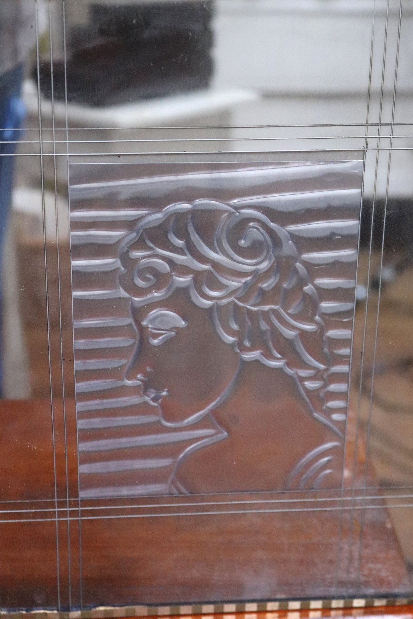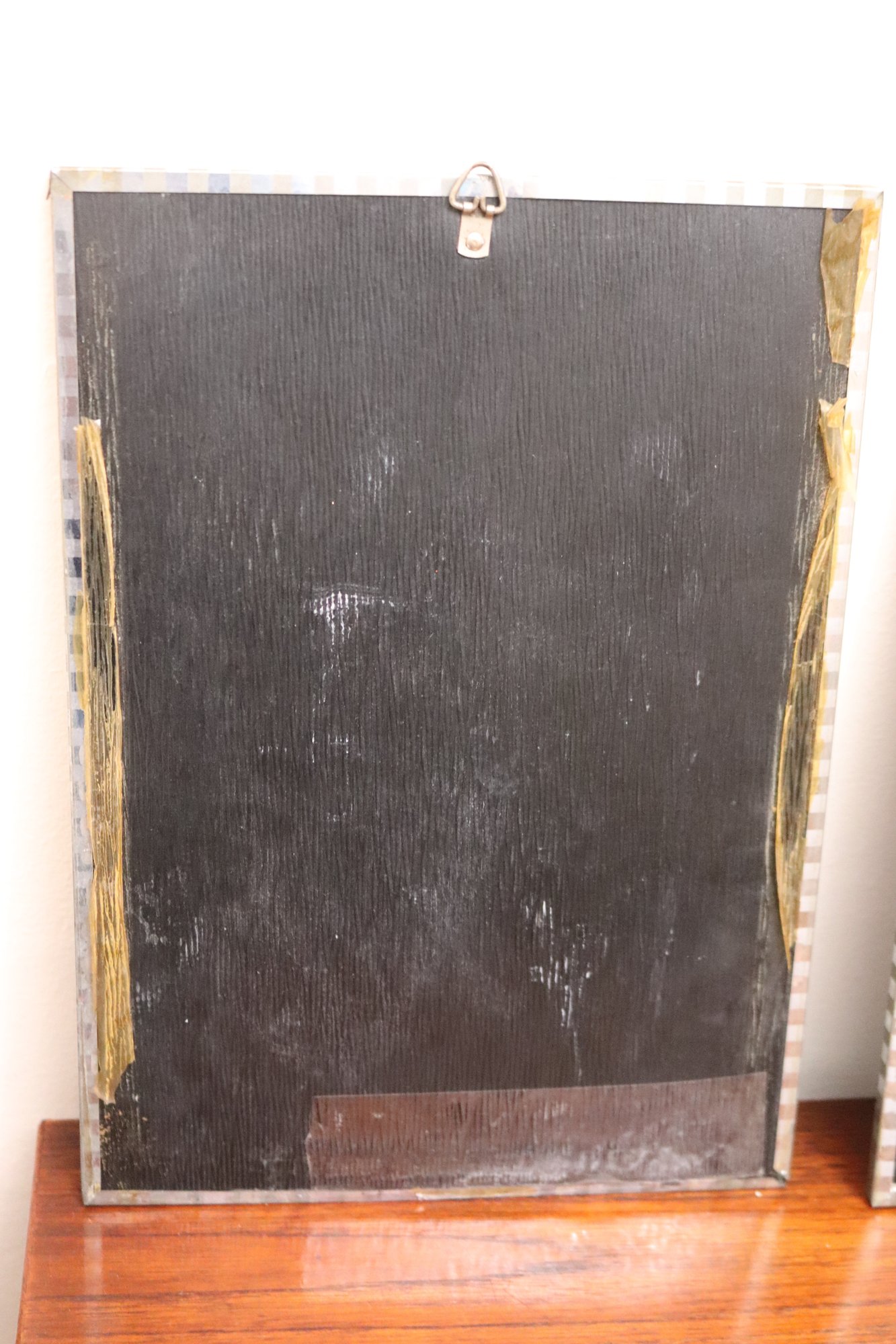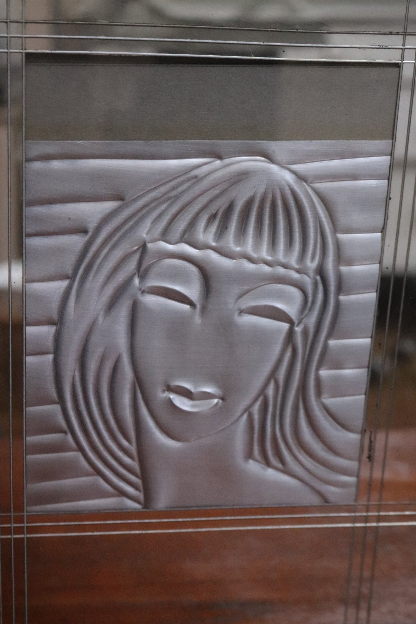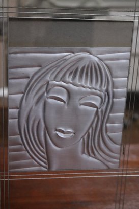 Vintage embossed portraits looks to be on some form of sheet metal, the corner of one frame may need some repair, it is being held by tape as pictured. Each frame measures approximately 10” w x 14” tall.