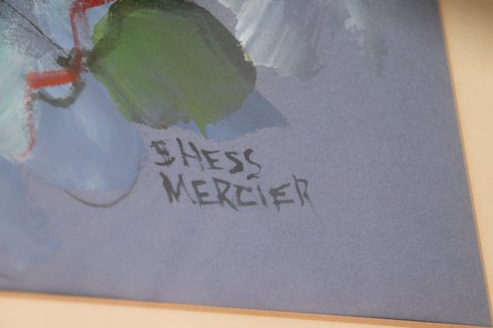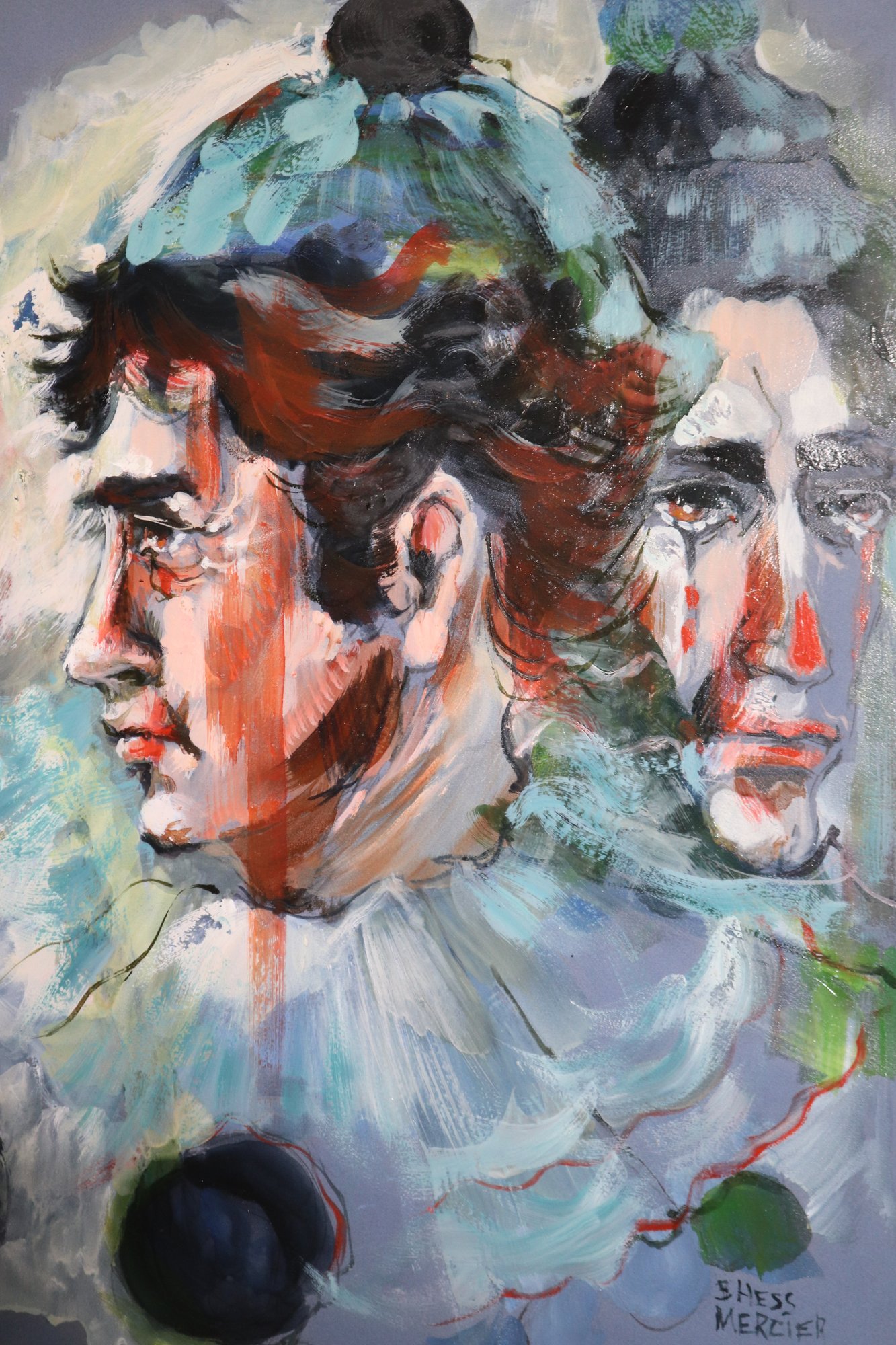 Vintage Framed Clown portrait painting signed by the Artist Barbara Hess Mercier, this