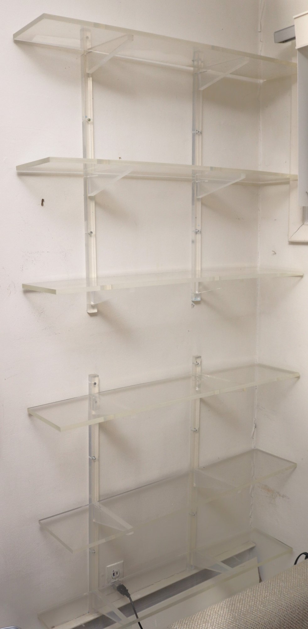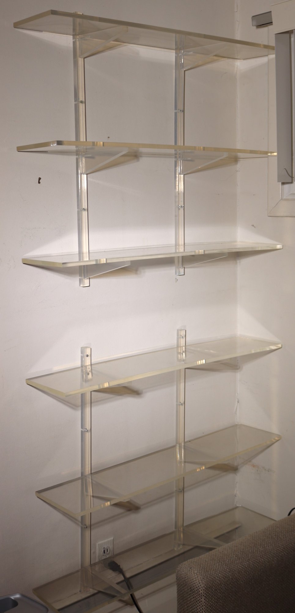 Vintage Lucite floating wall shelves , 6 shelves in total . Each piece measures
