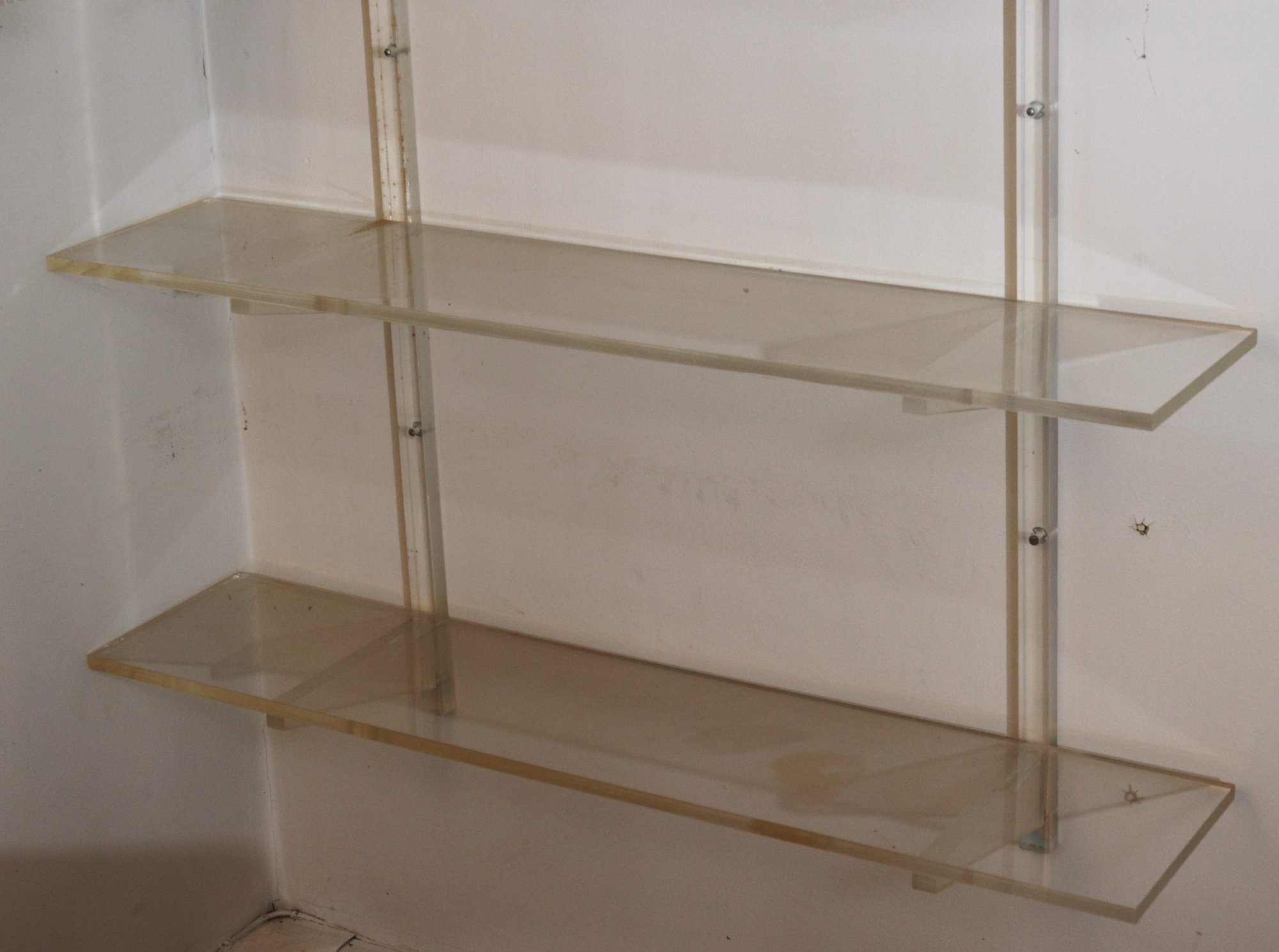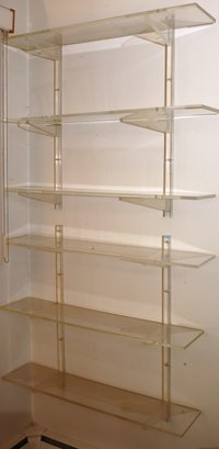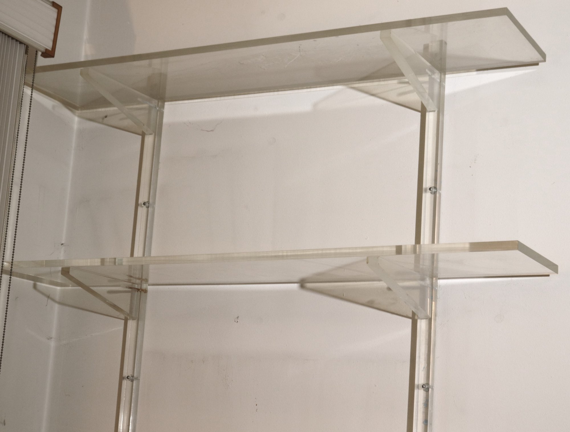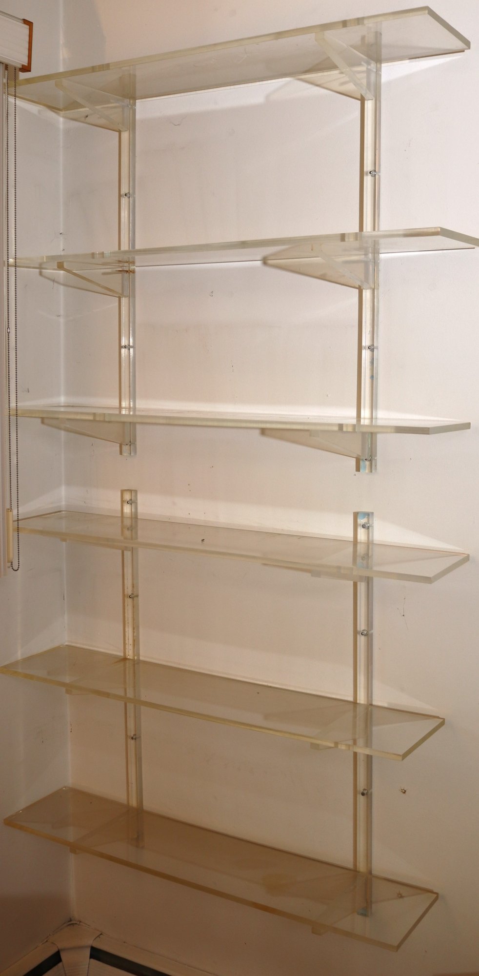 Vintage Lucite wall shelves measuring approximately 36” w x 8” d x 32” tall