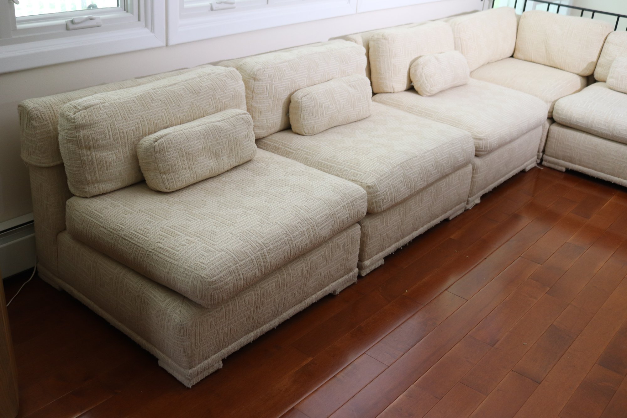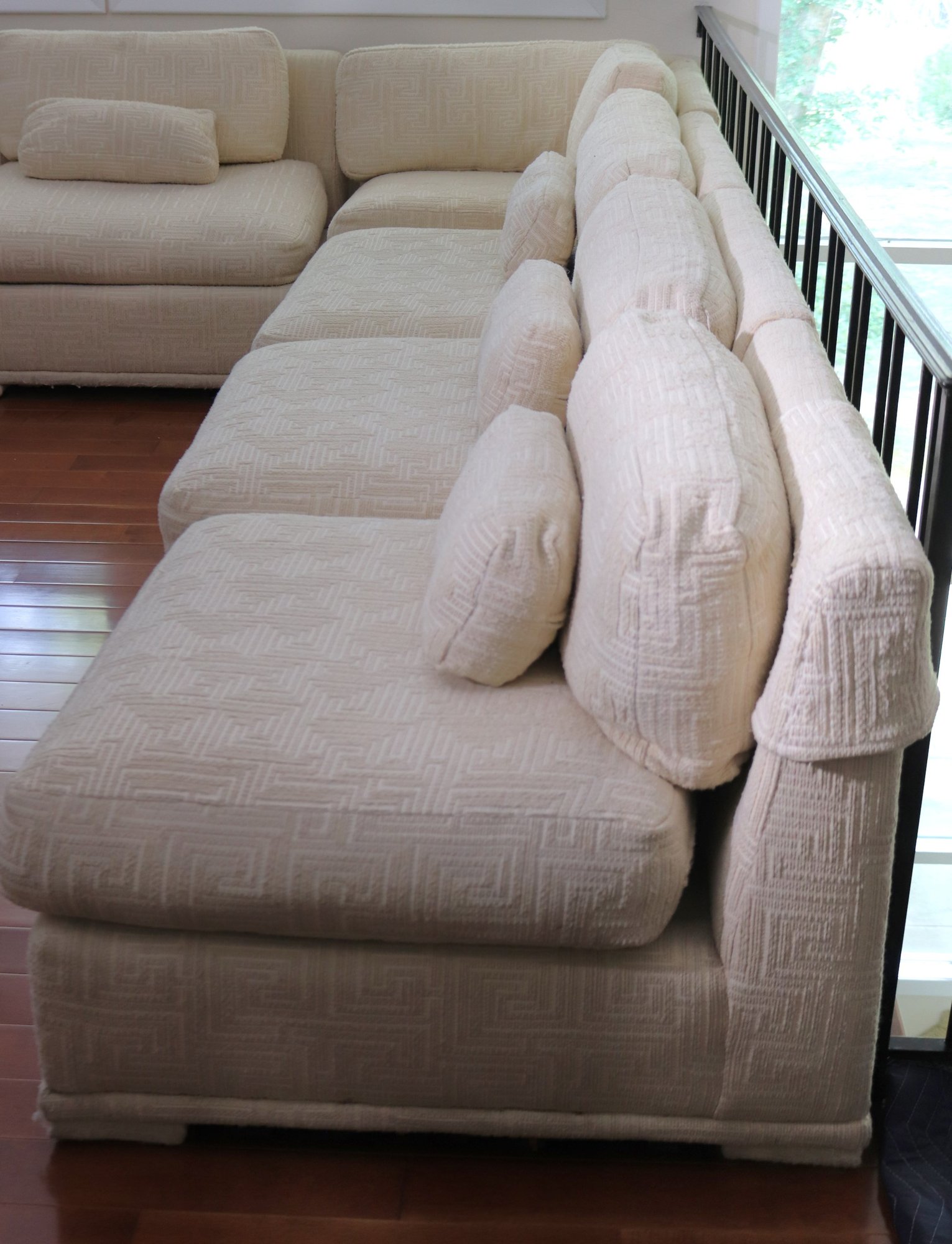 Includes extra throw pillows as pictured. Each section measures, 140” x 137” as
