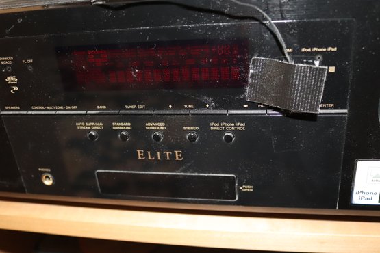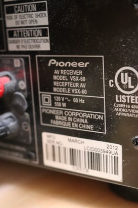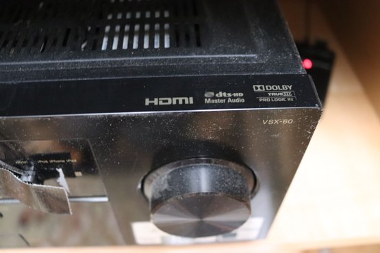 Vintage Pioneer Elite VSX60 HD DMI system with wires and remote included. Measures 17” x 13” x 6.75” T