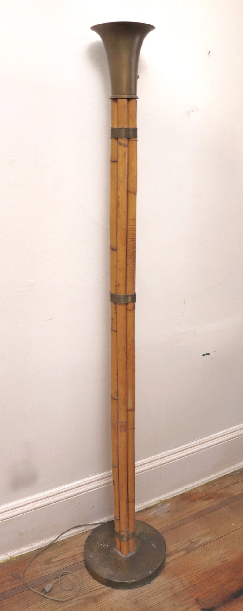 Vintage Russel Wright Bamboo floor lamp with Brass accents age-appropriate