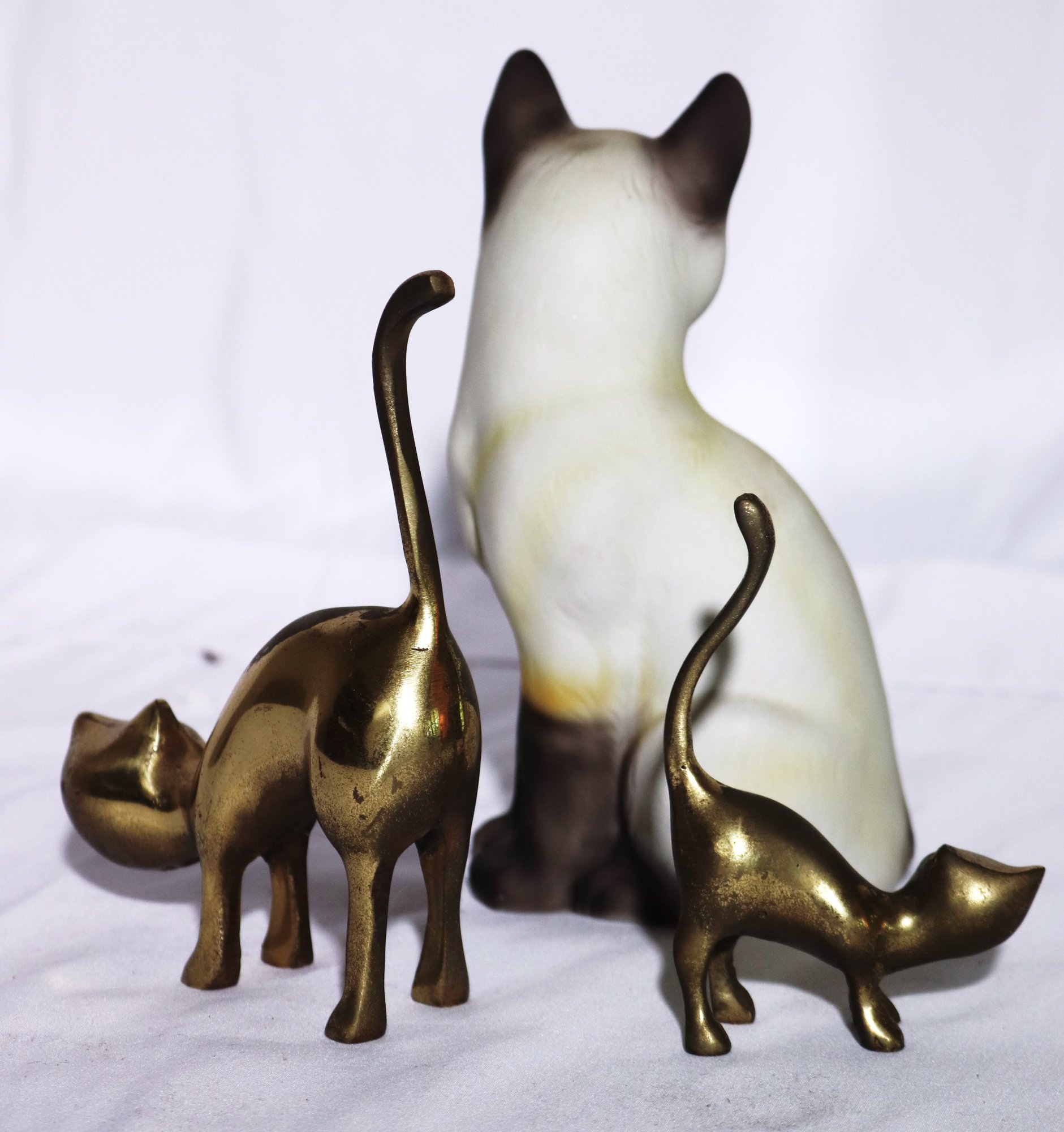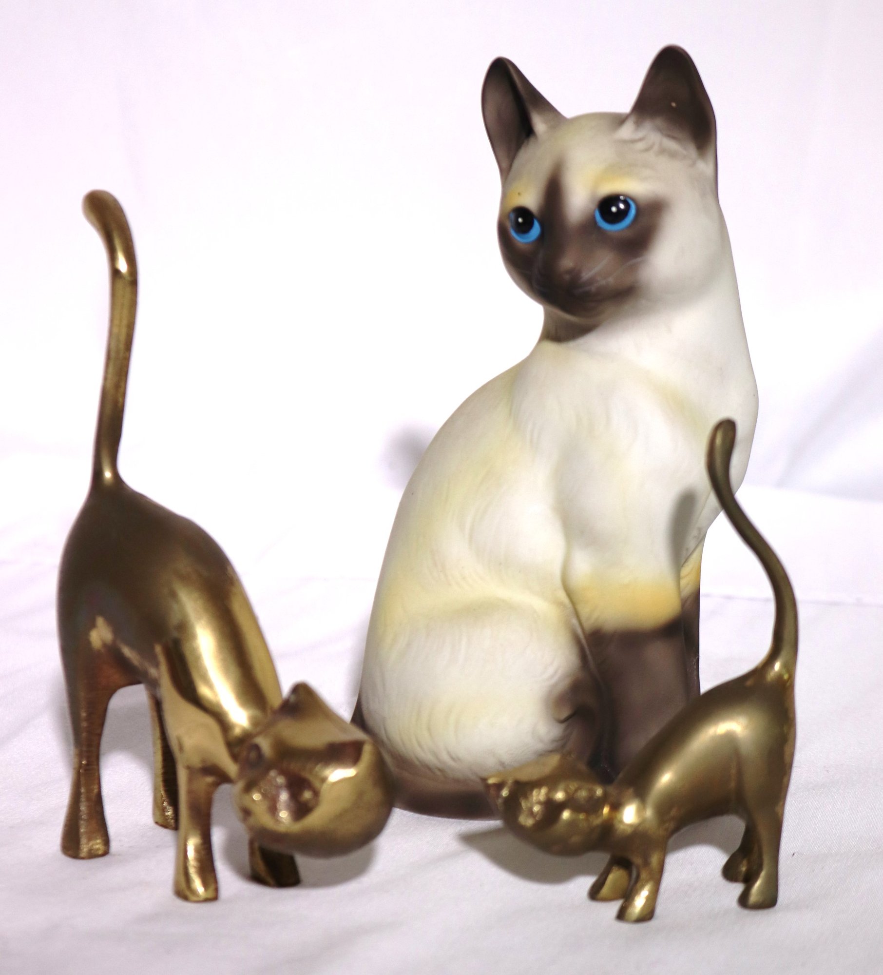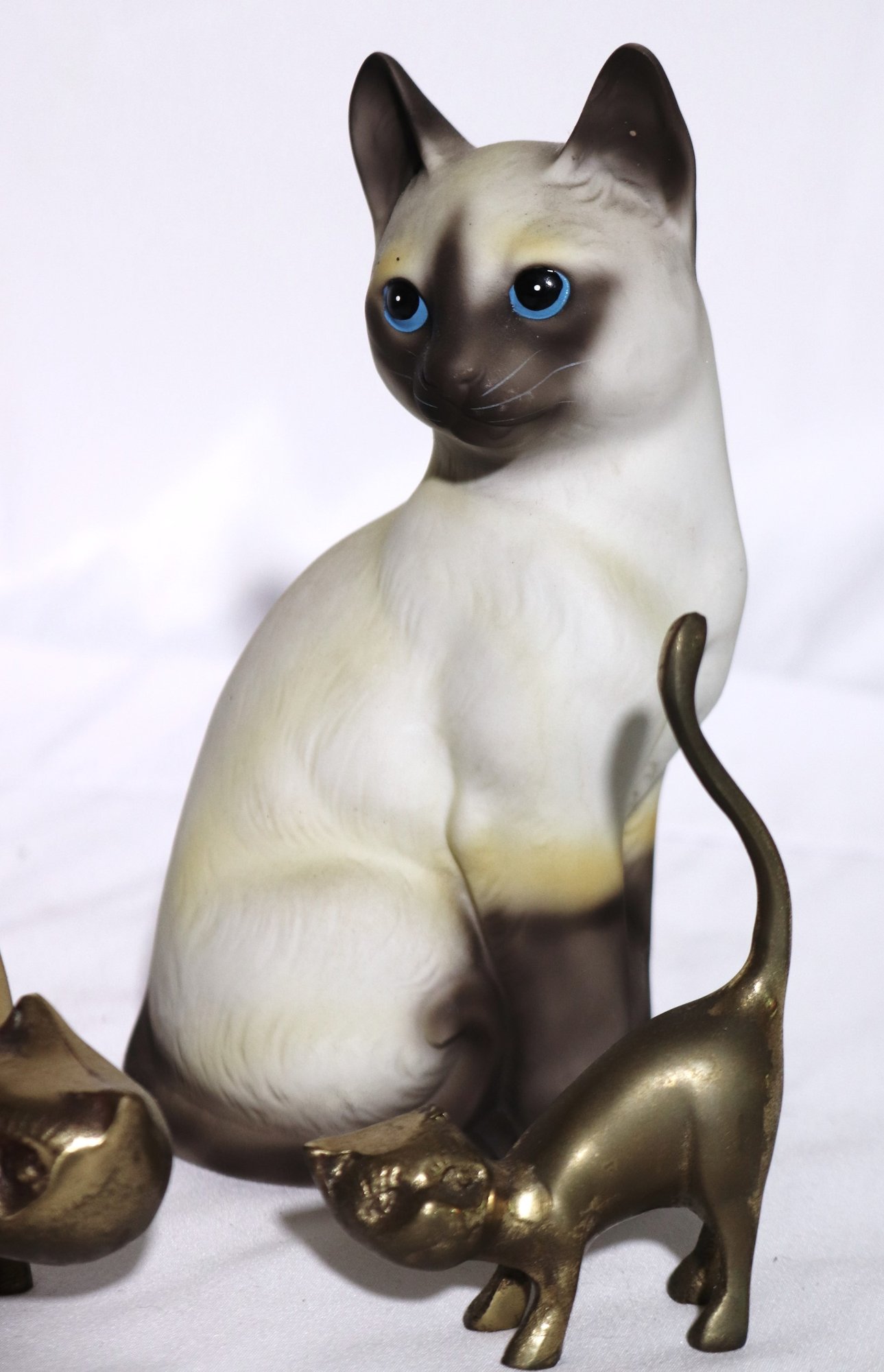 Vintage Siamese cat ceramic figurine measuring approximately 3.5” w x 7” tall, including