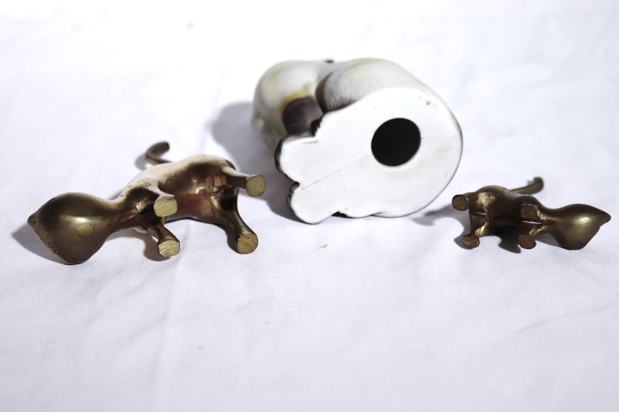 2 vintage brass cat miniatures showing some age-appropriate tarnishing as pictured,