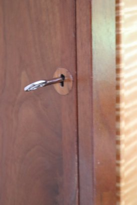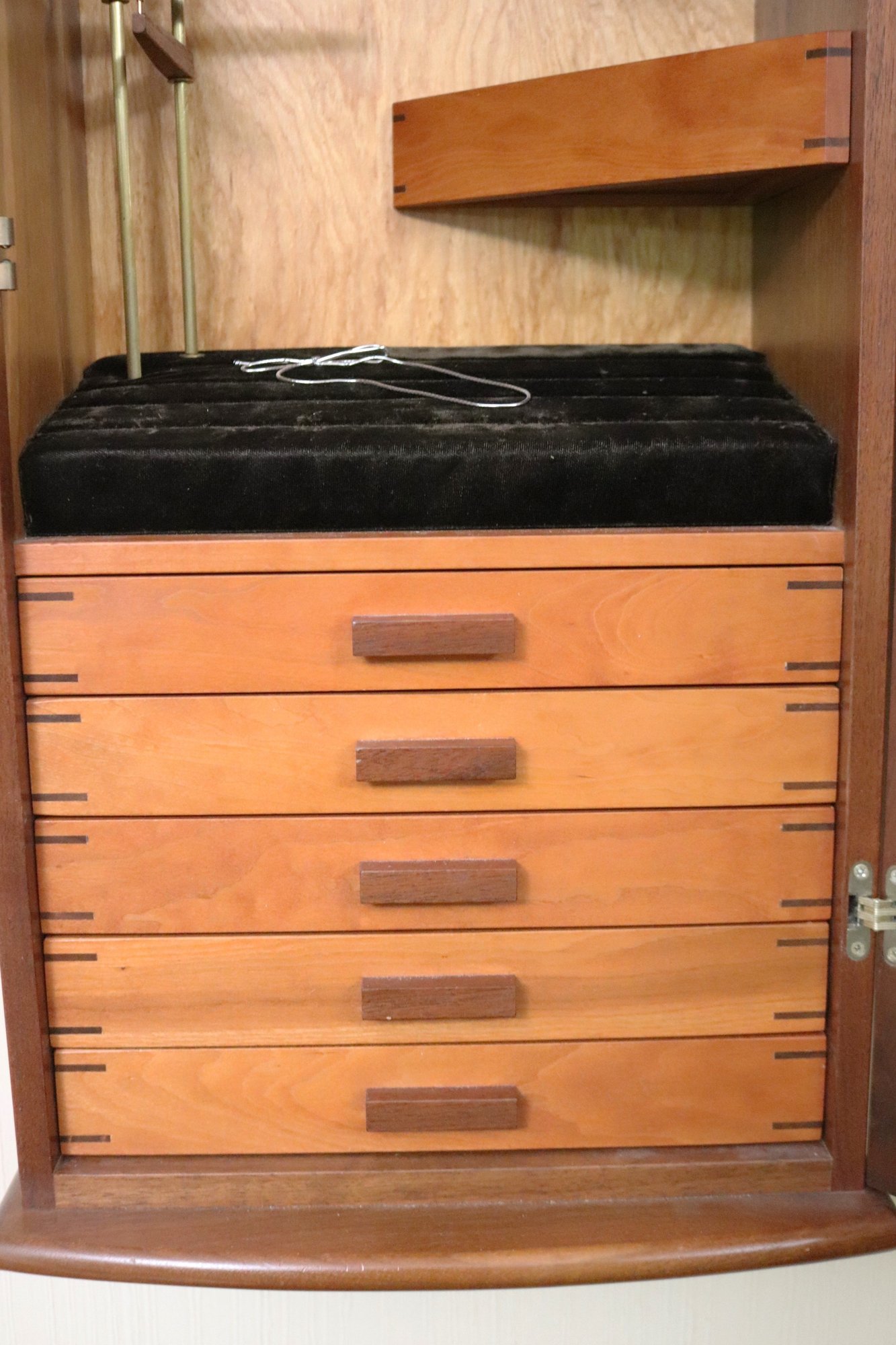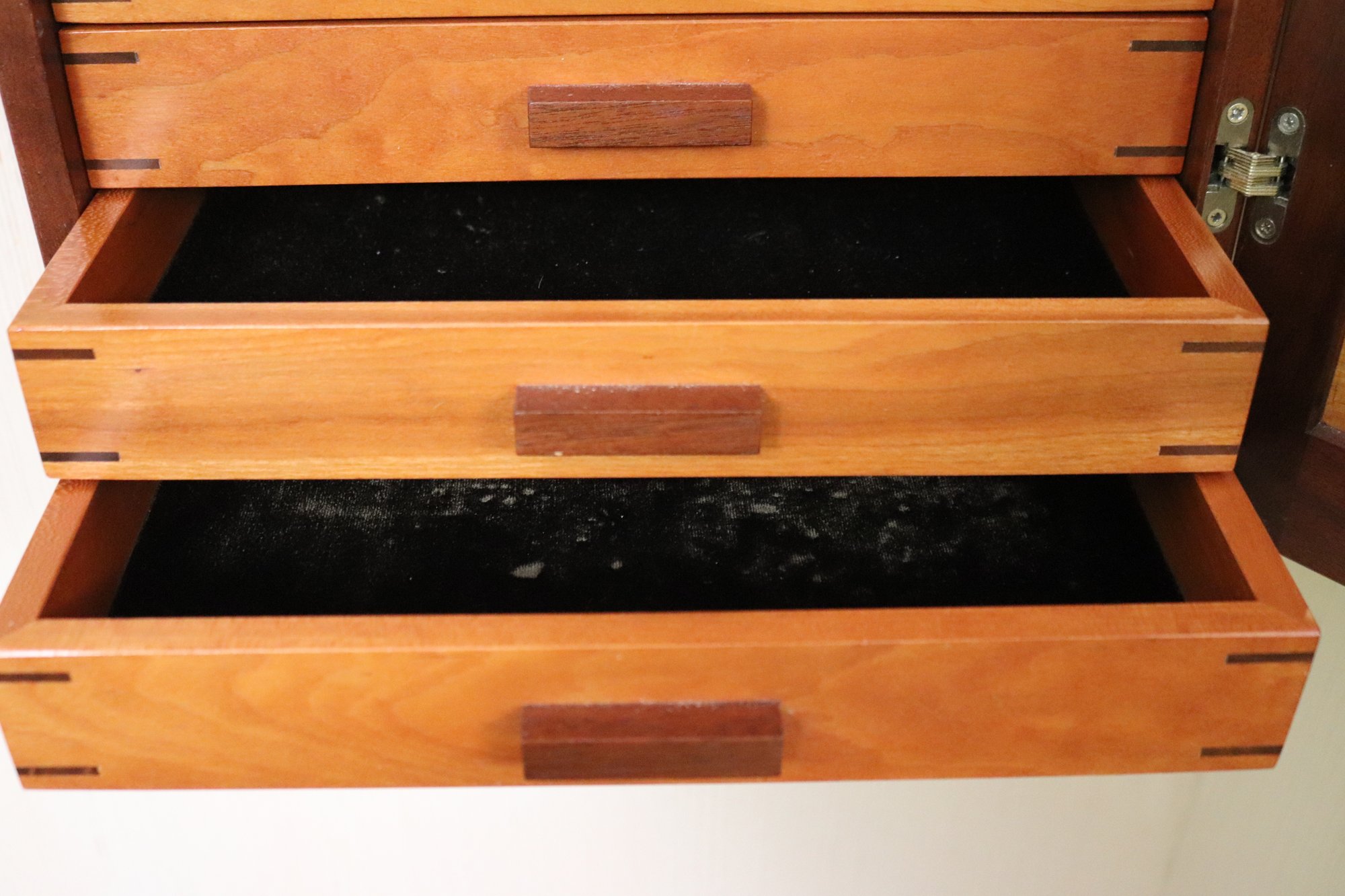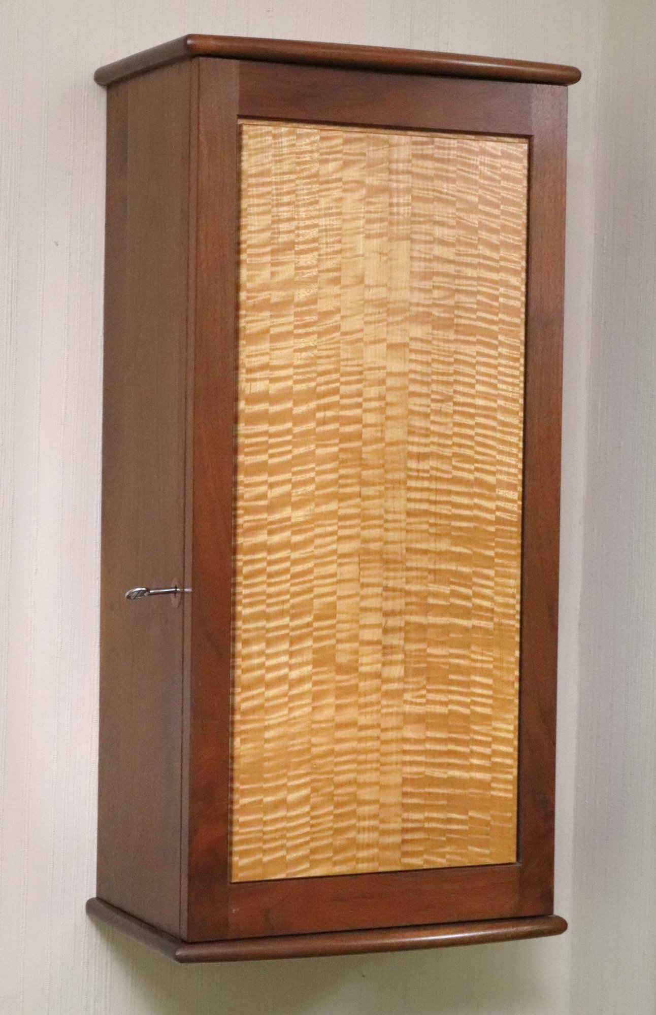 Wall mounted Jewelry case measuring approximately 15” w x 10” d x 31” tall