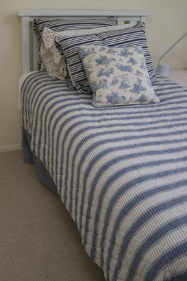 Headboard measures 41” L x 3” D x 42” T. Mattress is 38” x 74”. Railings are included.