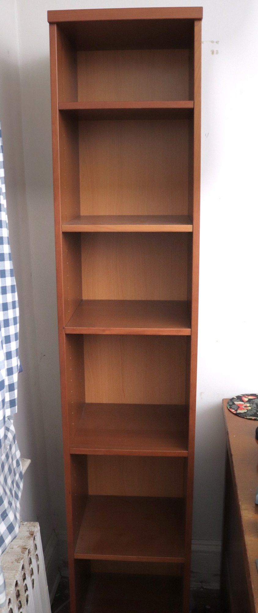 Wood shelf measures Approximately 14” w x 12.5” d x 72” tall.