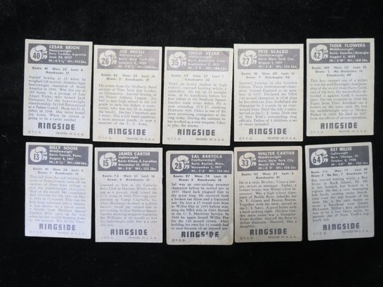 Includes James Carter, Sal Bartolo, Walter Cartier, Ray Miller, Billy Soose, Tiger Flowers, Petey Scalzo, Chico Vejar, Joe Miceli, Ceasar Brion. Overall about VG.