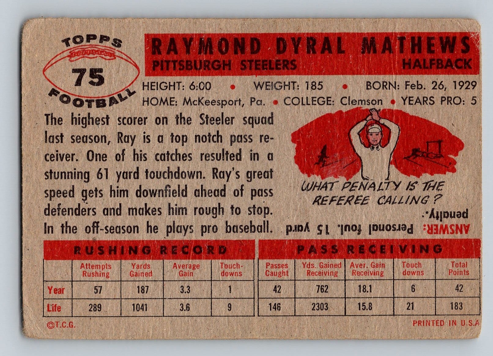 1956 TOPPS Ray Mathews Football Card - G/VG