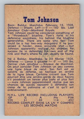 1957 PARKHURST Tom Johnson Hockey Card - EX