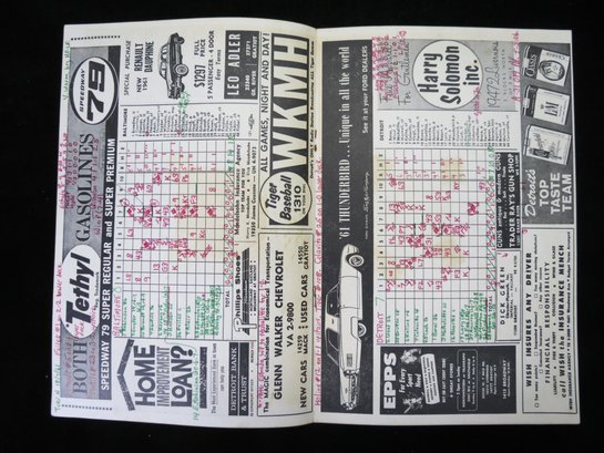 1961 Tigers vs Orioles Baseball Program - Al KalinÄ™ Home Run
