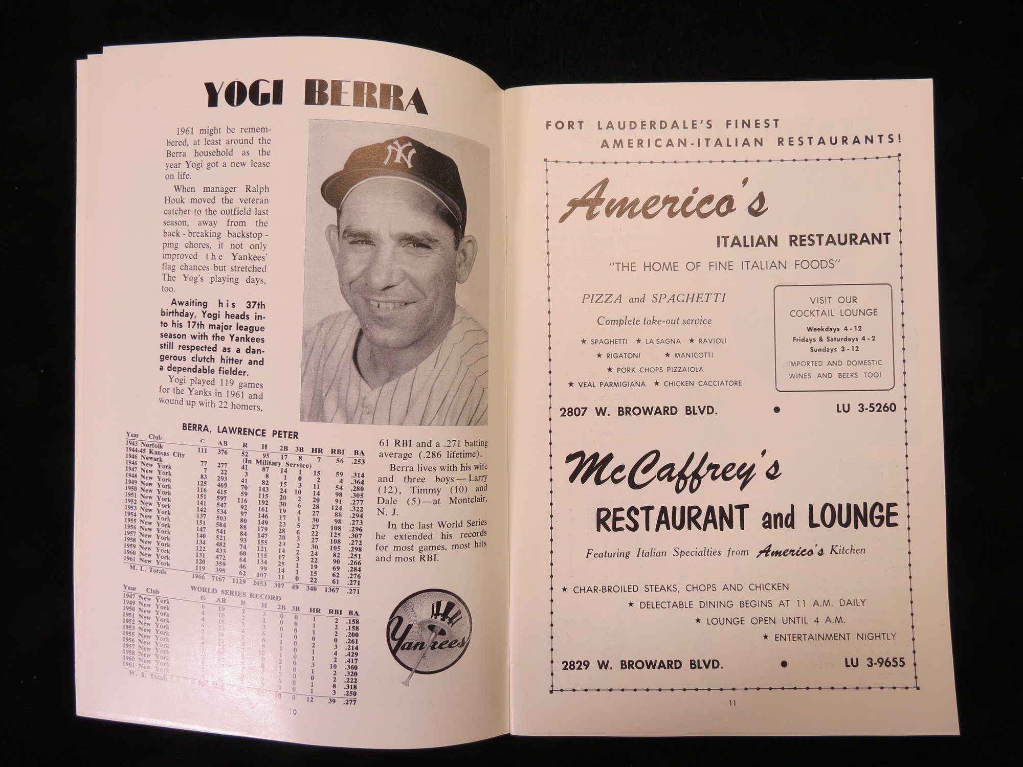 1962 Yankees vs Dodgers Baseball Spring Training Baseball Program