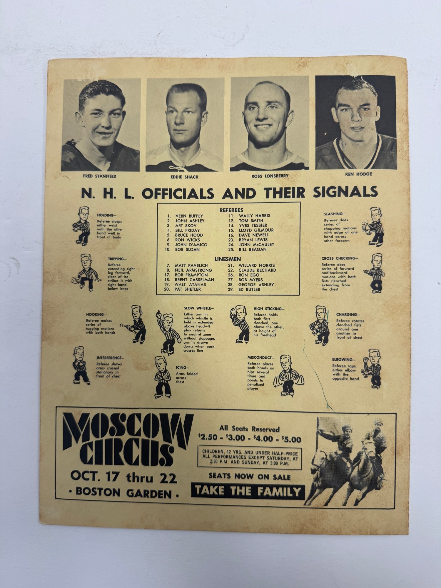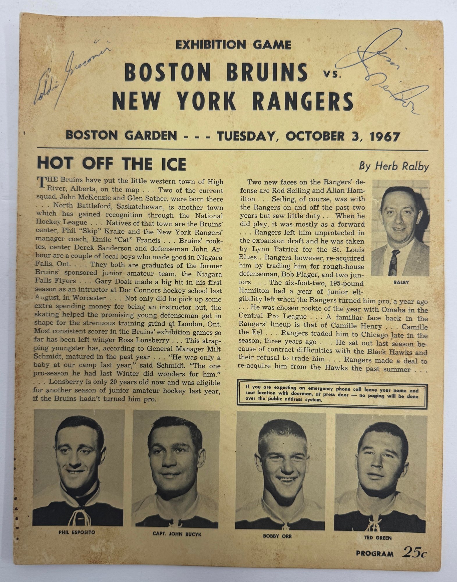 1967 Boston Bruins v Rangers Game Program Signed Giacomin Neilson