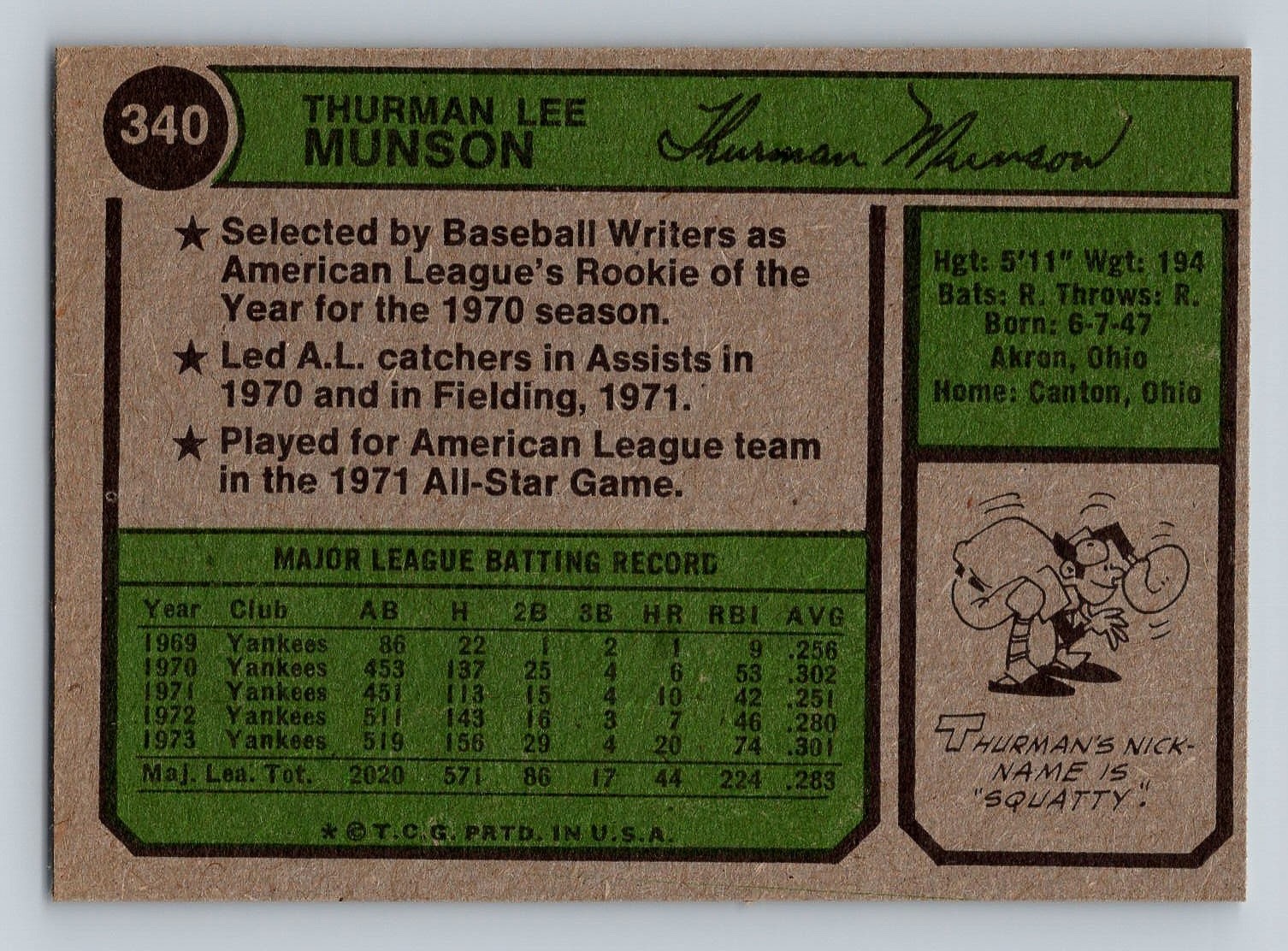 1974 TOPPS Thurman Munson Baseball Card - NM/MT