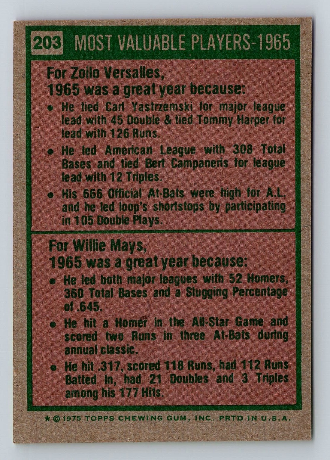 1975 TOPPS '65 MVP Baseball Card - NM/MT
