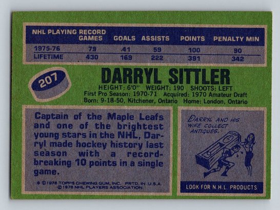 1976 TOPPS Darryl Sittler Hockey Card - EX/MT
