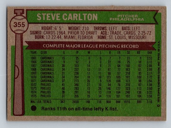 1976 TOPPS Steve Carlton Baseball Card - EX/MT