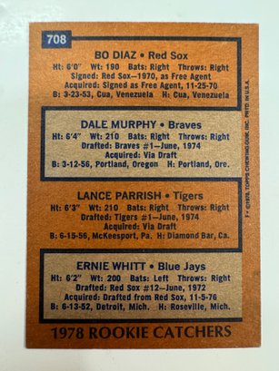 1978 Topps Baseball Dale Murphy Rookie Card EX-NM
