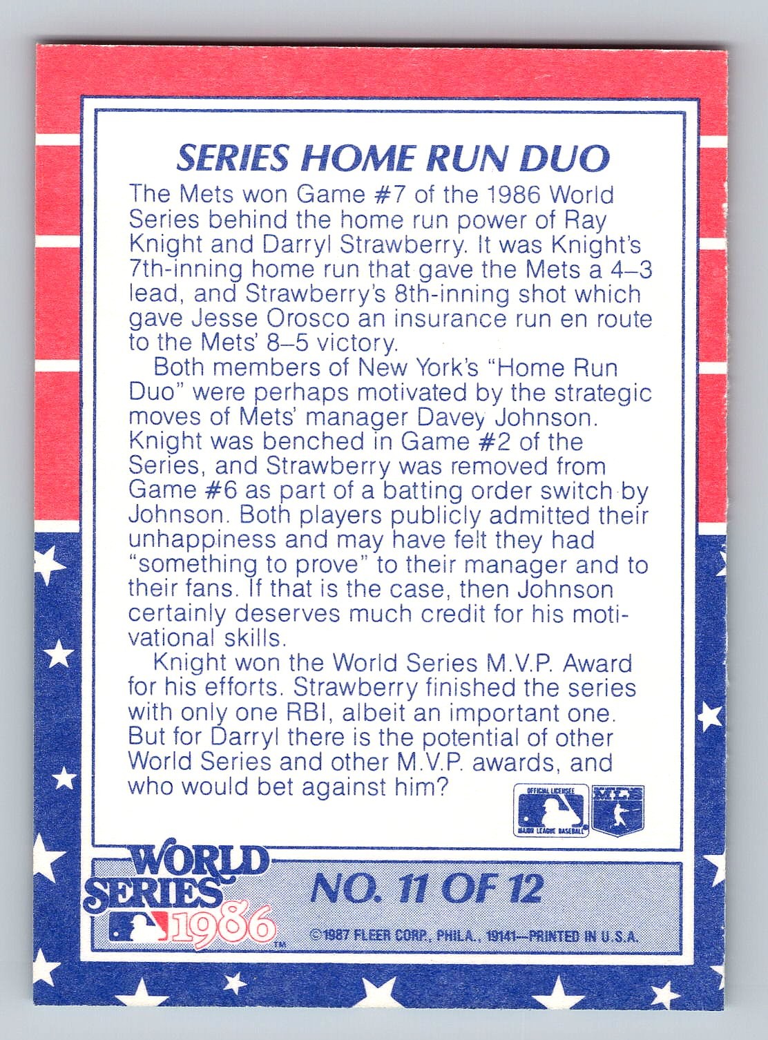1987 Fleer Wade Boggs Keith Hernandez World Series Baseball Card - Only In Factory Sets - MINT