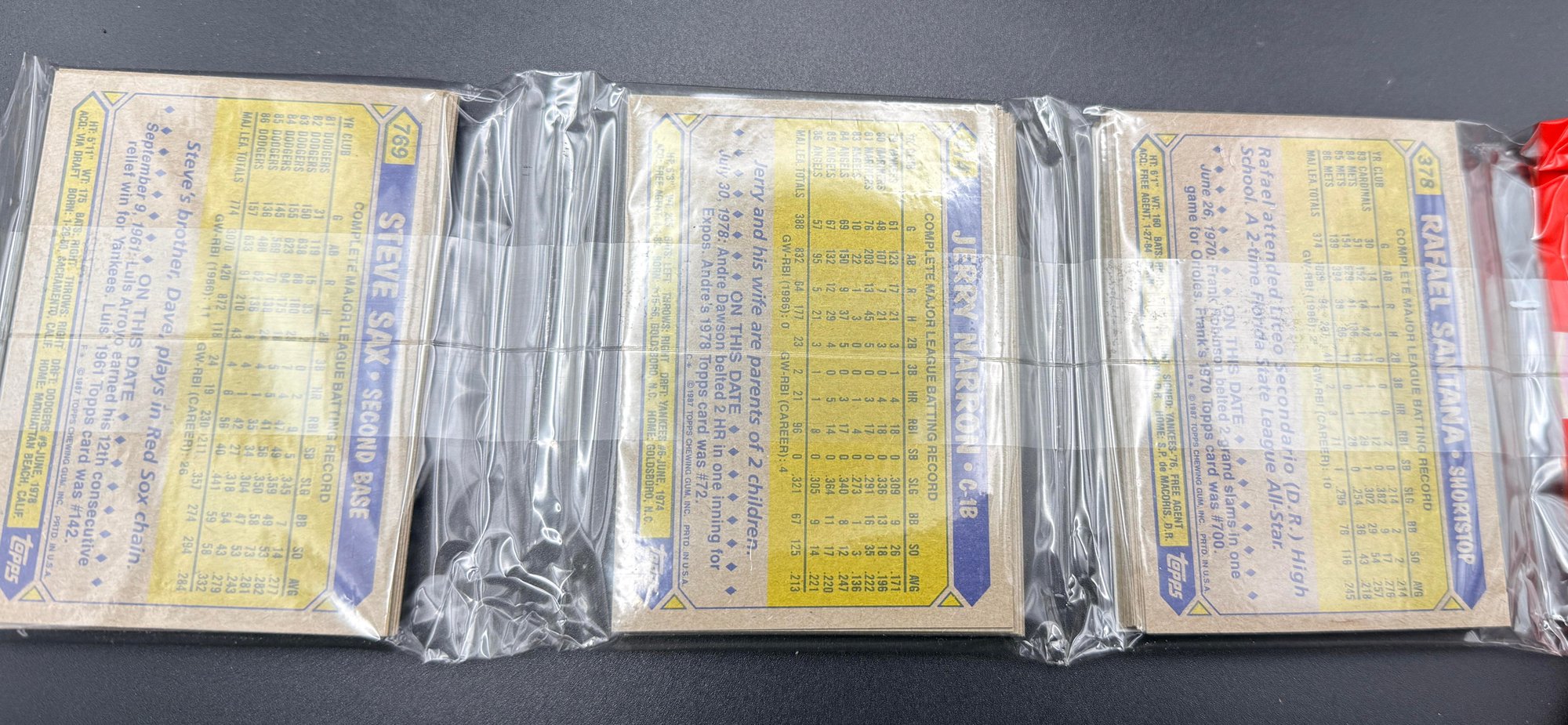 1987 Topps Baseball Card Sealed Unopened Rack Pack - Possibly Bo Jackson Rookie - Dale Murphy On Top
