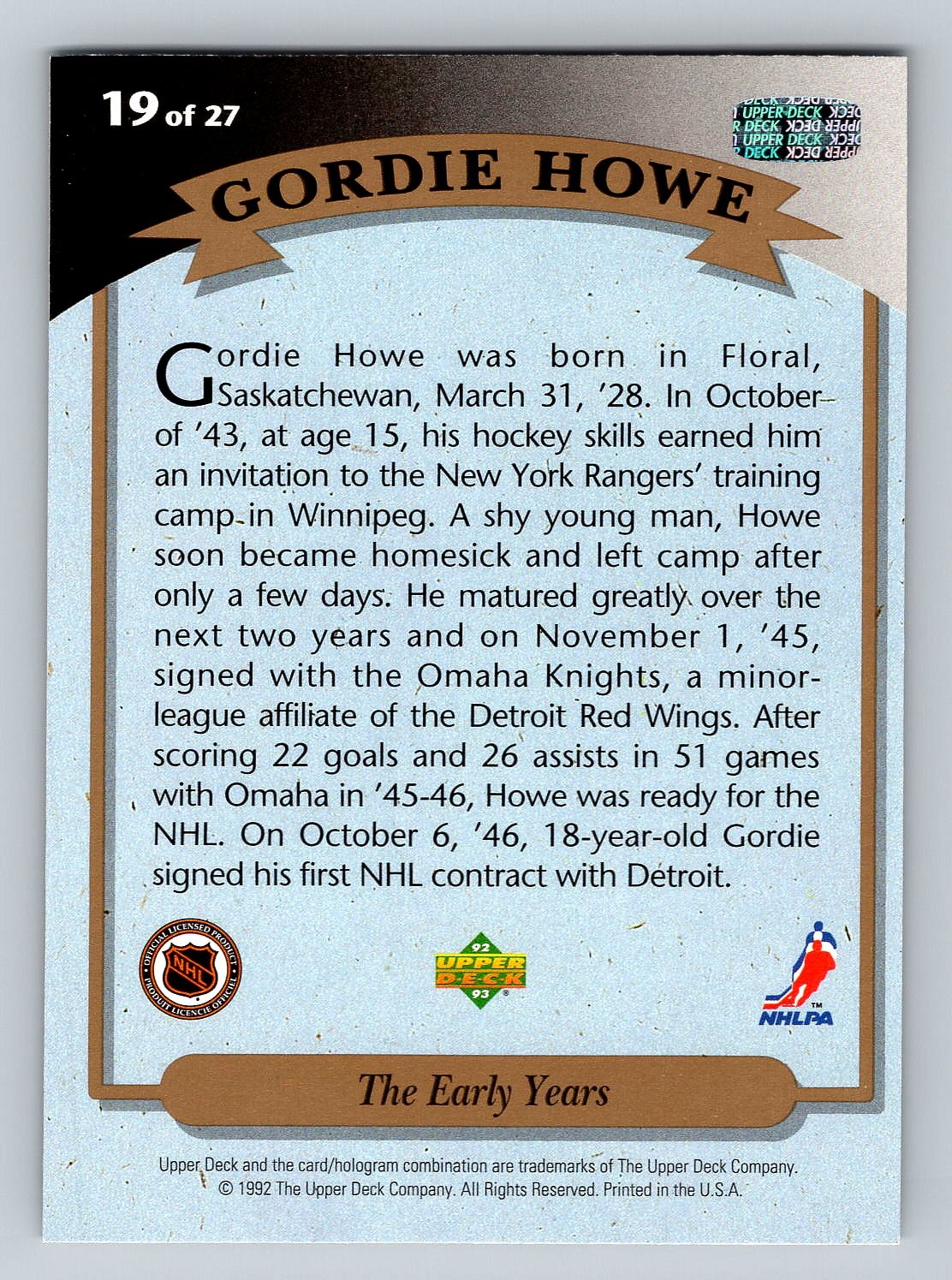 1992-93 Upper Deck Hockey Heroes Gordie Howe Insert Card - MINT