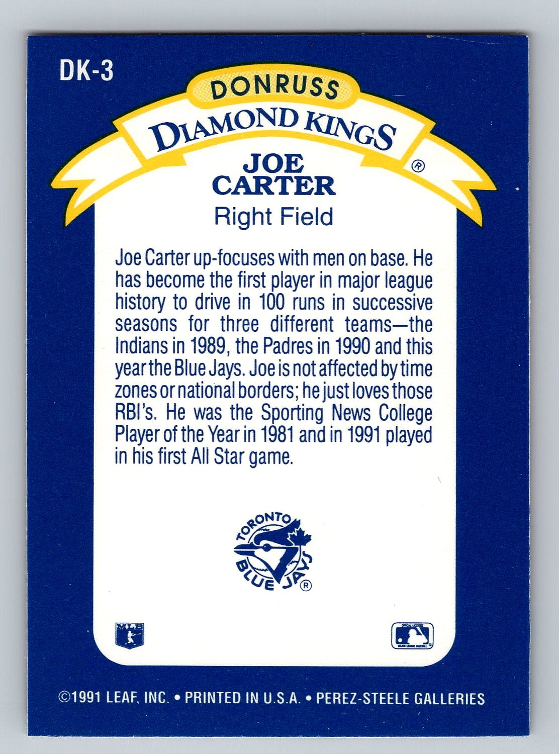 1992 Donruss Joe Carter Diamond King Insert Baseball Card - MINT