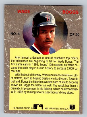 1992 Ultra Wade Boggs All-Stars Insert Football Card - MINT