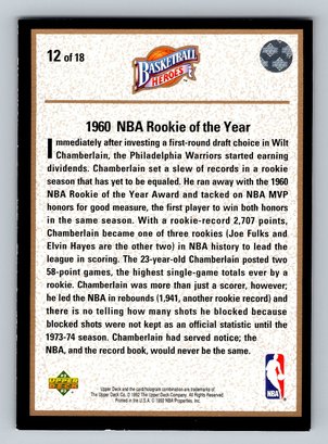 1992 Upper Deck Basketball Heroes Wilt Chamberlain Insert Card - NM/MT