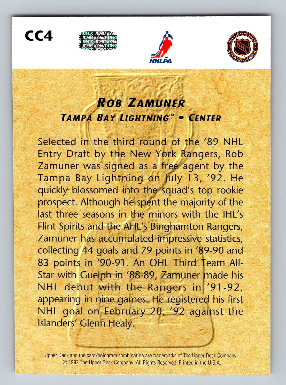 1992 Upper Deck Calder Candidates #CC4 Rob Zamuner Hockey Card - MINT