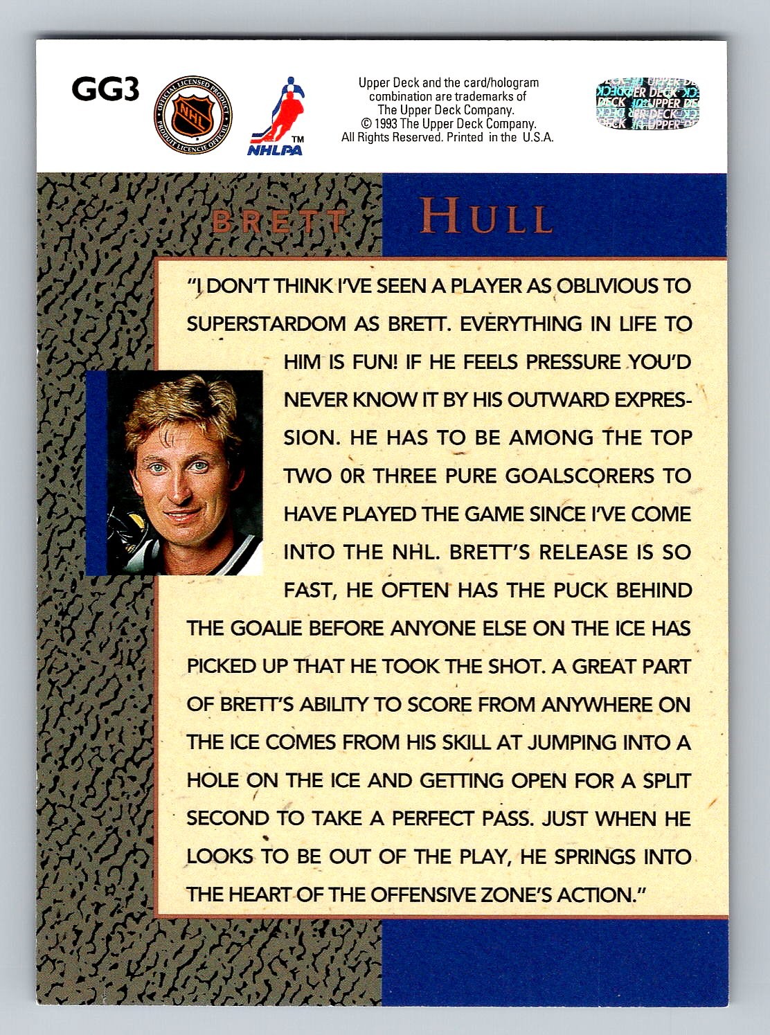 1993-94 Upper Deck Gretzky's Great Ones Brett Hull Insert Hockey Card - MINT