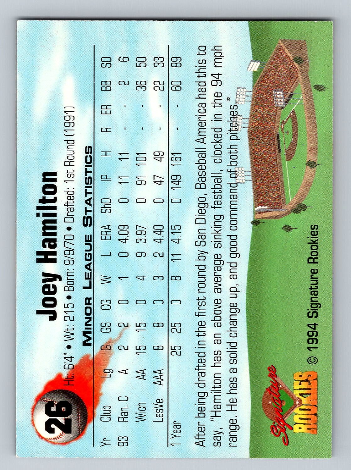 1994 Signature Rookies Joey Hamilton Signed Autographed Baseball Card - MINT