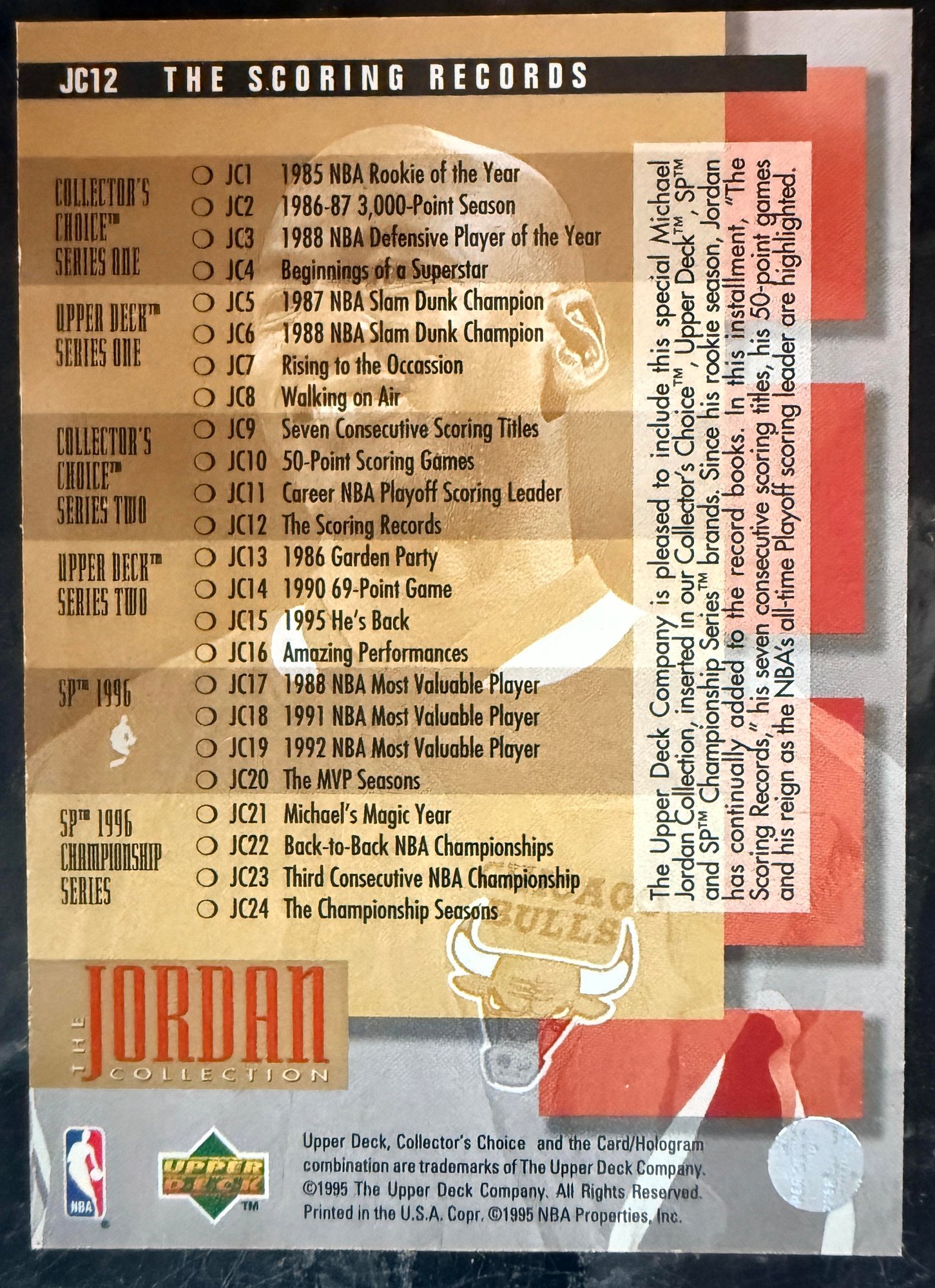 1995-96 Upper Deck Collector's Choice Michael Jordan Collection Basketball Card - MINT