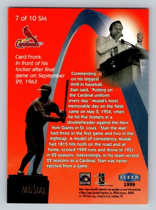 1999 Fleer Tradition Stan Musial Monumental Moments Baseball Card - MINT