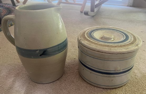(2) Blue and White Antique Stoneware Pieces
