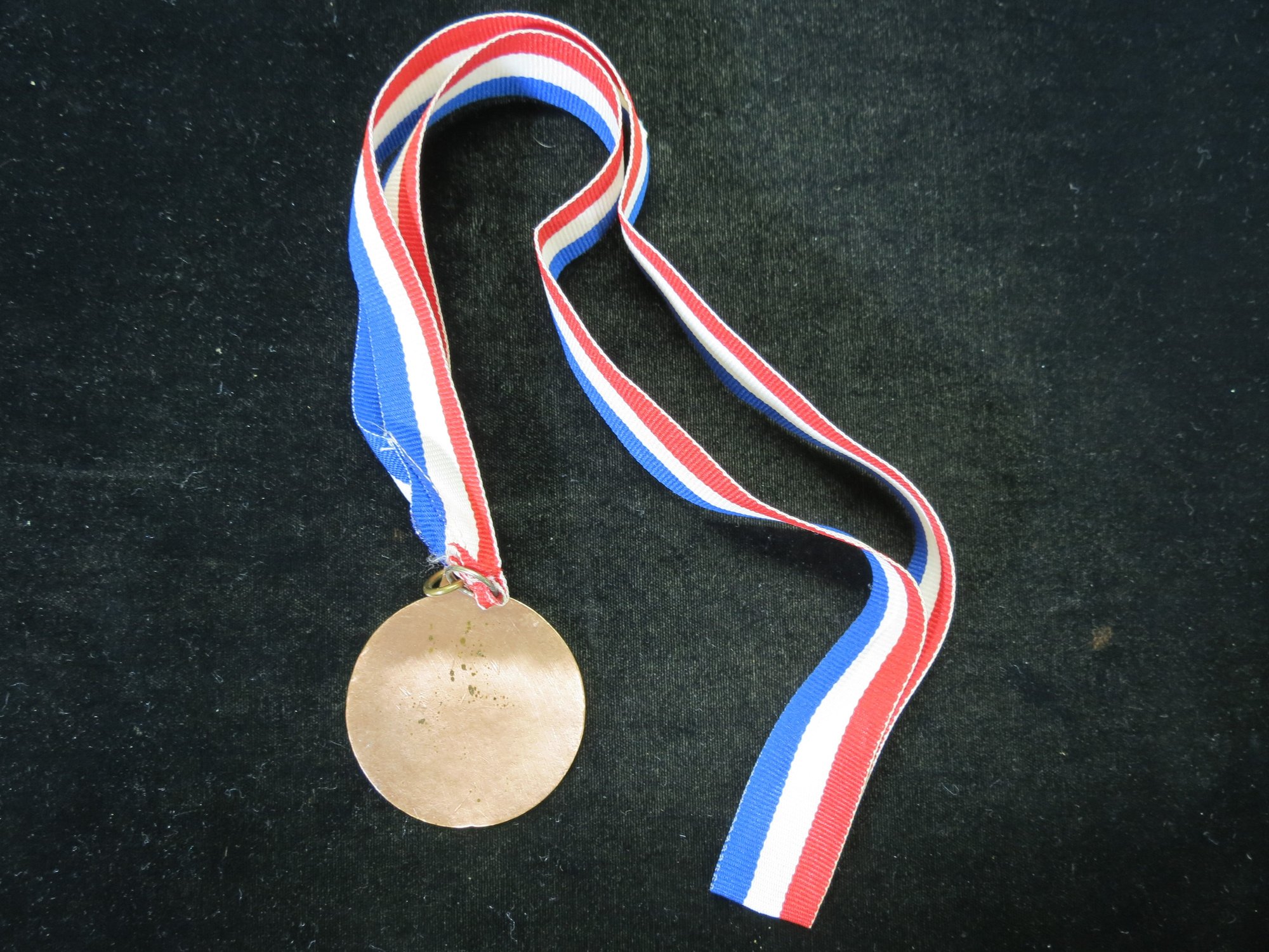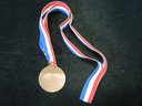 Won by a later participant in the 2002 and 2006 Winter Olympics. Won December 15th. It is undated and looks exactly like the 2000 Medal and 2001 Olympic Qualifying medal, but was identified by the athlete as being from the Dec 15th 2001 event (a day before the Olympic qualifying event). 2" diameter. With original red, white and blue ribbon. Some minor scuffing/scratches, excellent overall condition, but there are some spots of corrosion. The consignor wishes that the name not be public, but the name of the participant will be provided to the high bidder (he is well known and has an extensive wiki page).