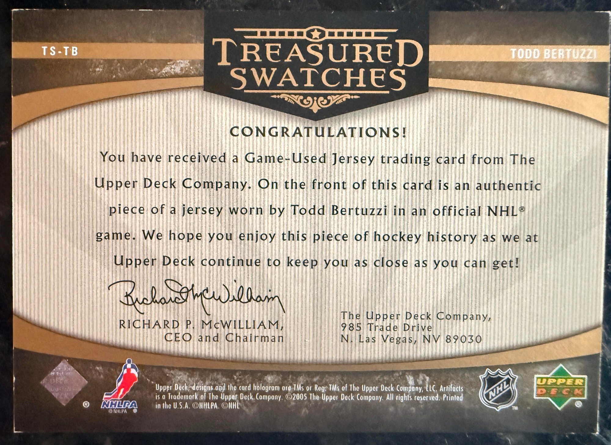 2005-06 Upper Deck Artifacts Todd Bertuzzi Treasured Swatches Jersey Hockey Card - EX/MT